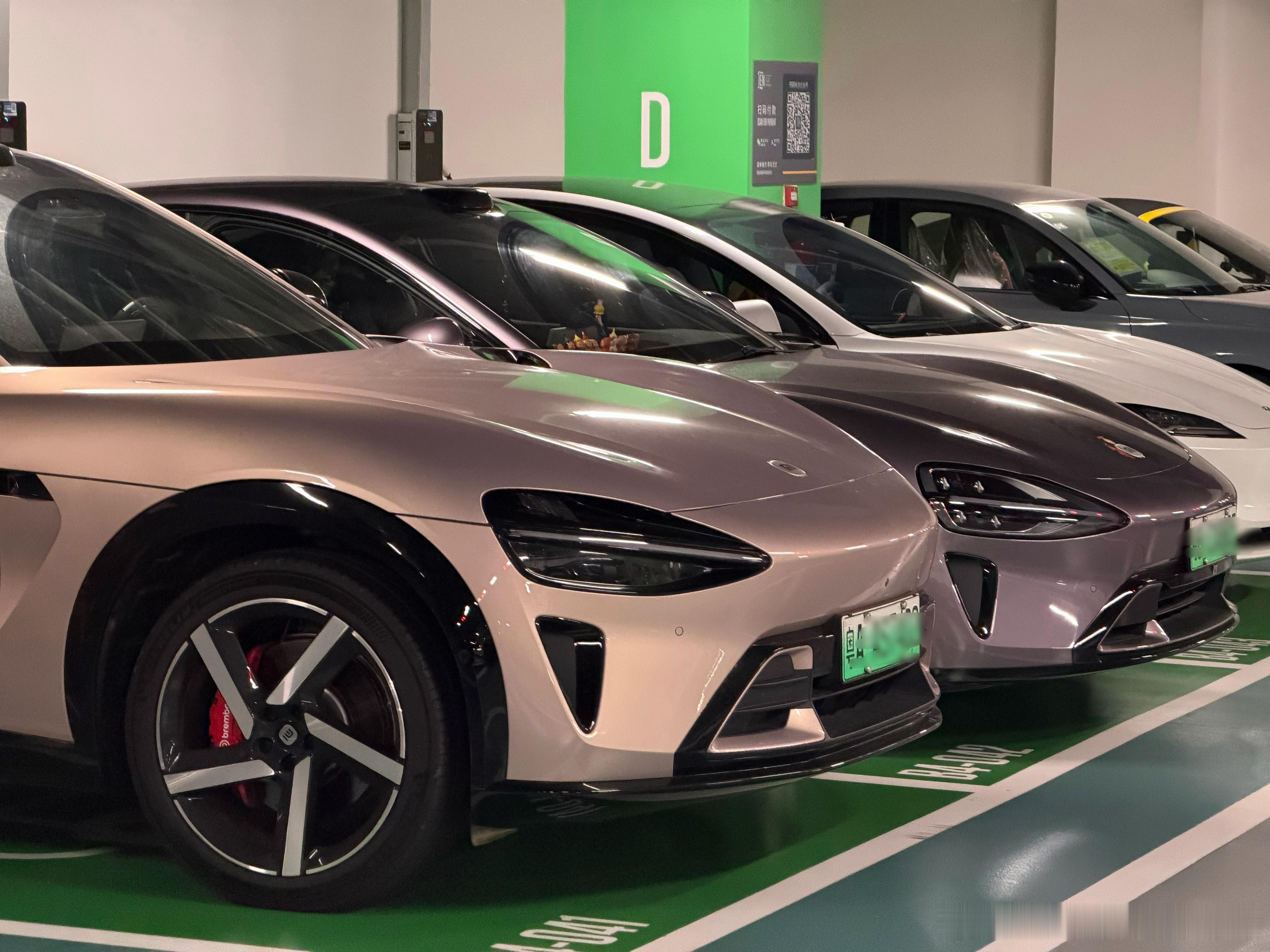 同一个停车区域,不管YU7还是SU7就是会情不自禁的停在一起。。。