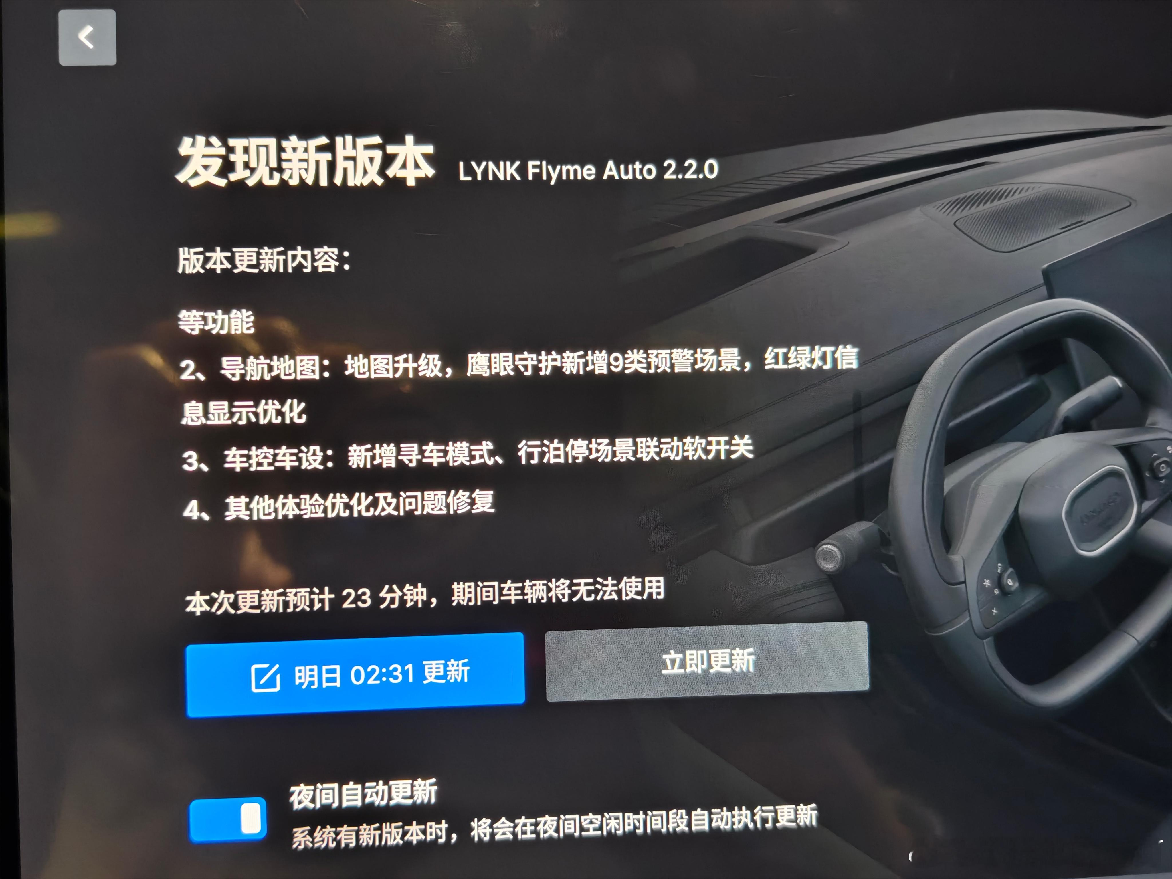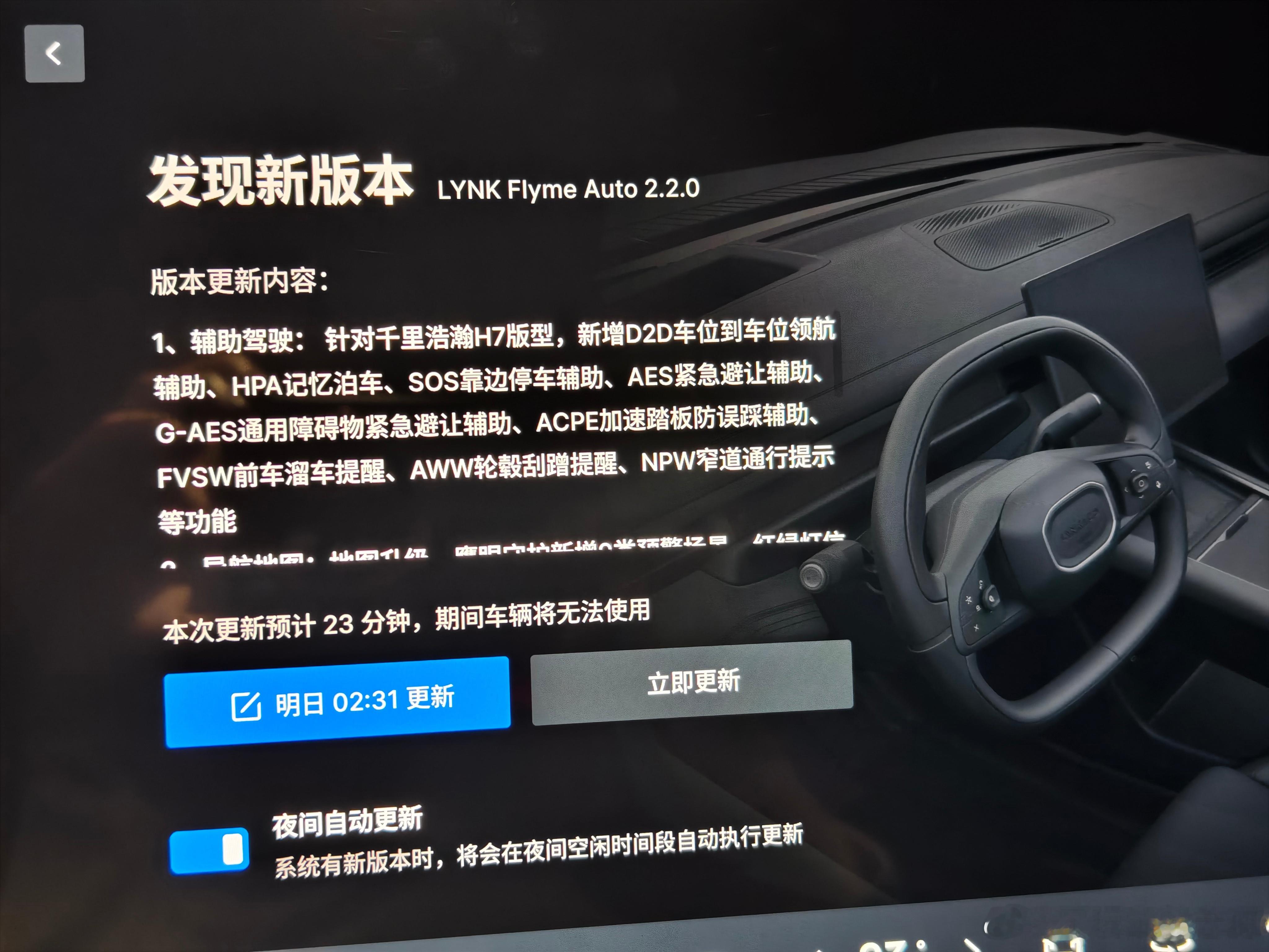 领克10em-p 的Flyme auto 2.2.0是跟着新07和08一起推送了