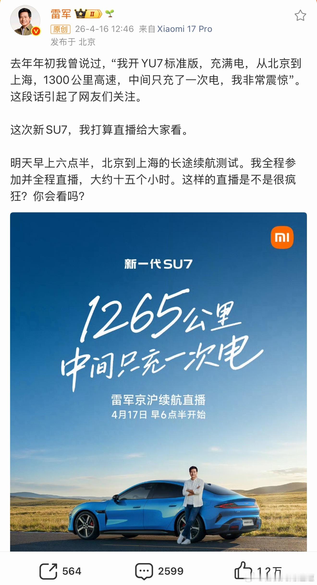 雷军将全程直播15小时好家伙 为了回怼尬黑雷总也是拼了