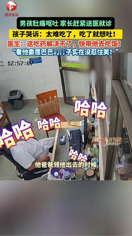 孩子离开的时候,还在一个劲儿的跟他爸爸描述,学校里的饭菜有多么多么难吃。听到这儿,医生也忍不住哈哈大笑起来。