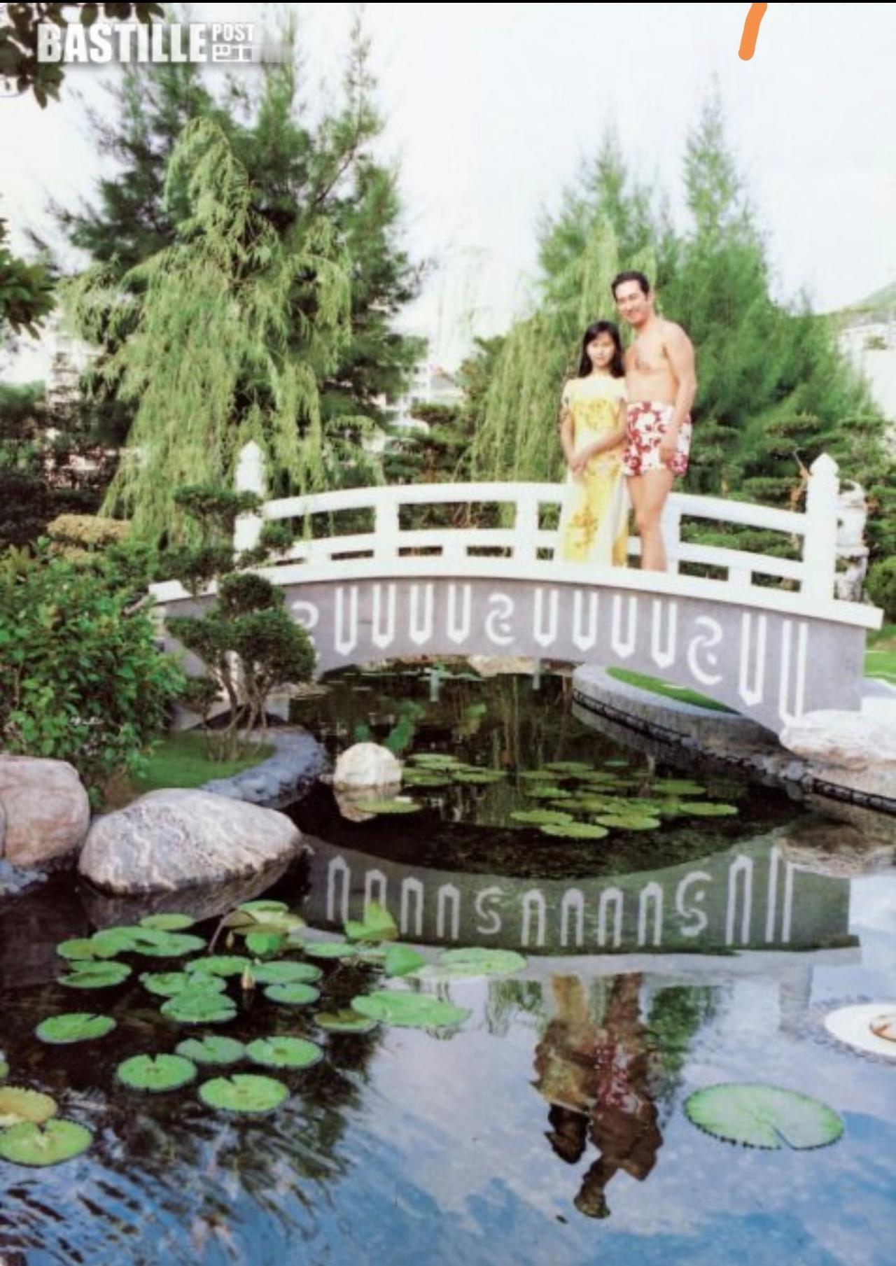 第一次见到赌王何鸿燊打赤膊的模样,看上去应该是在自家花园游泳。