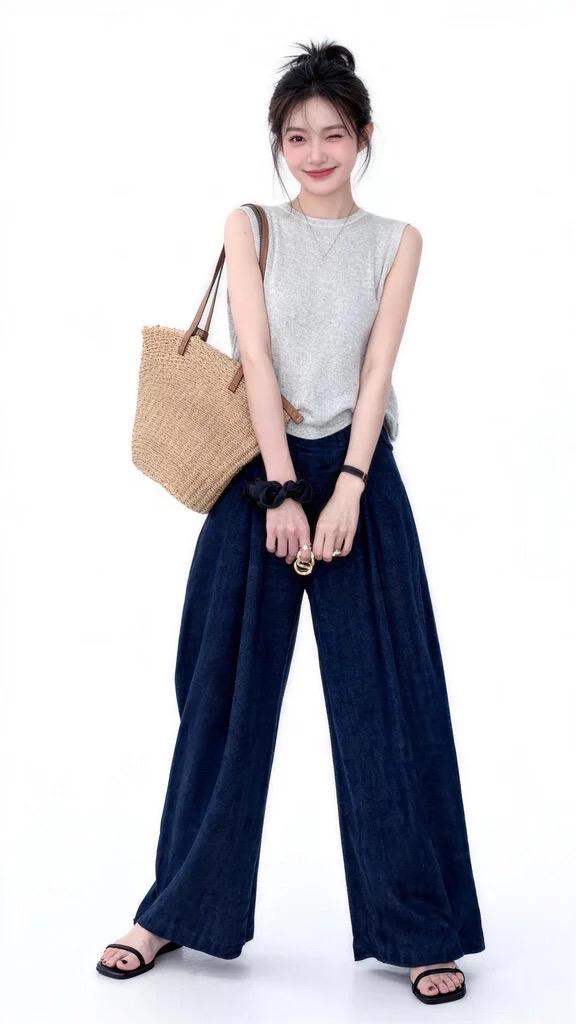 针织背心牛仔裤穿搭 背心阔腿裤穿搭 分享阔腿裤穿搭 令人心动的松弛感穿搭 同款显瘦高腰阔腿裤