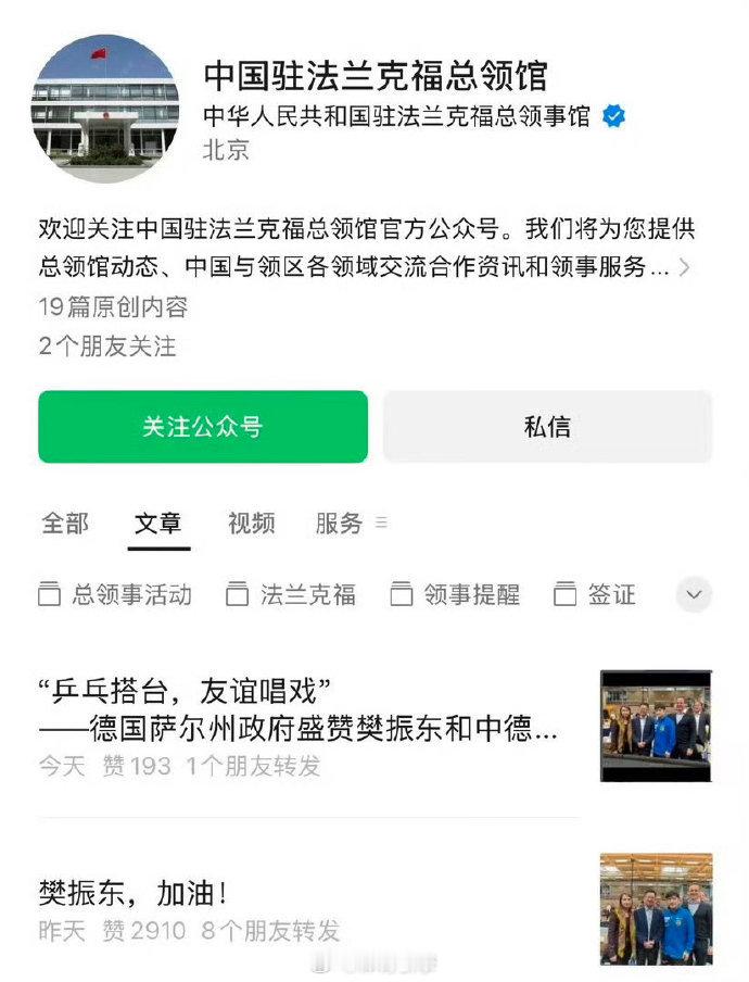 外交部欧洲司宣传樊振东 当“中欧信使”的蓝V,转发了一位运动员的主场告别视频,这早已超越了一场简单的体育赛事报道。