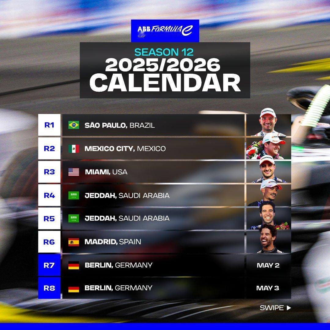 新赛季前6⃣️轮比赛已产生5⃣️位不同的冠军车手。🏆FE电动方程式 ⚡️