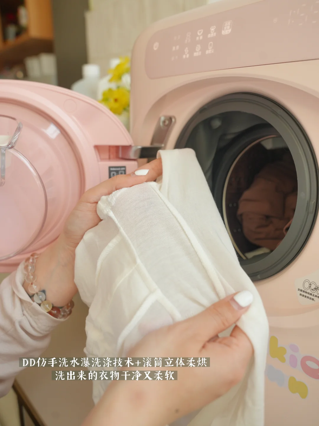 洗衣机是可爱的,衣服是柔软干净的,