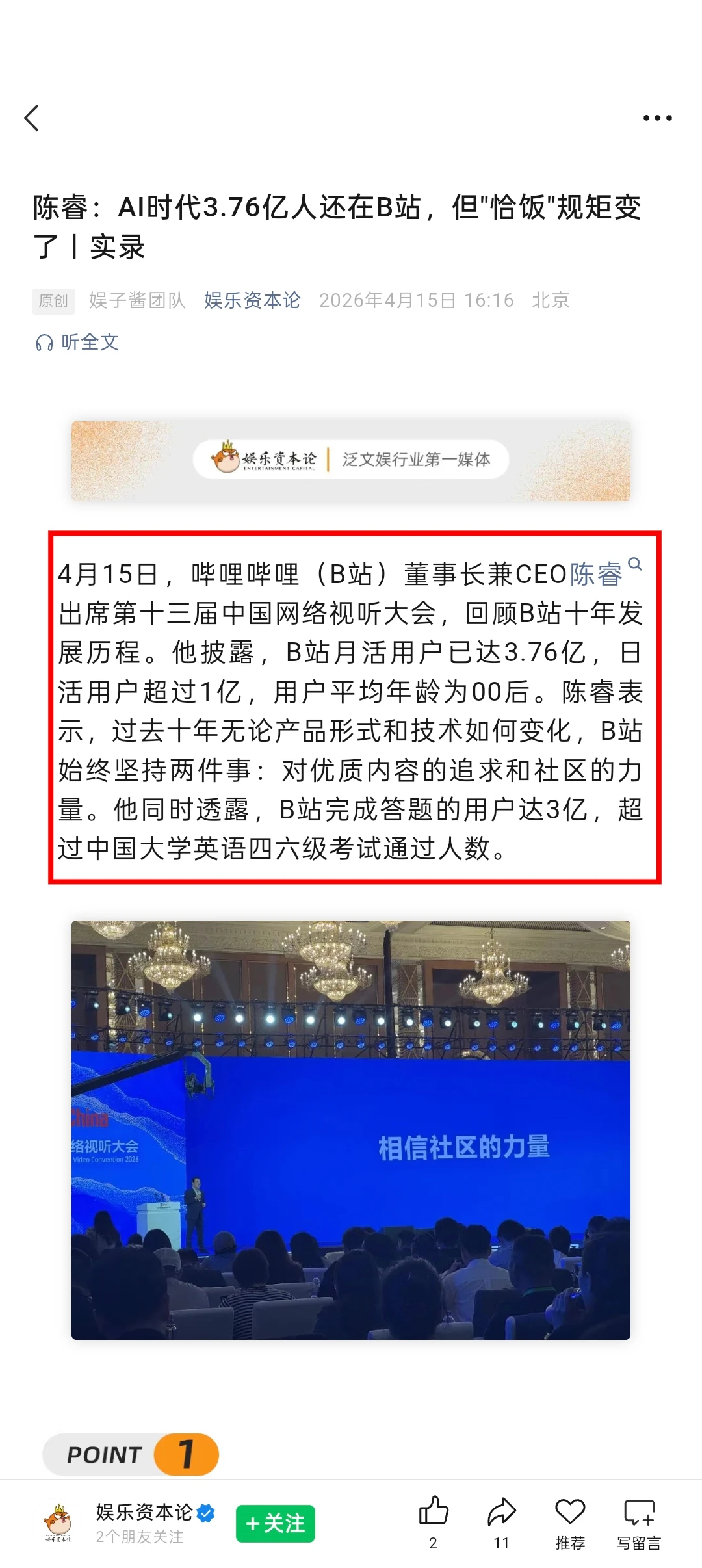 陈睿回顾过去十年,说小破站一直在讲同一件事,就是优质内容。