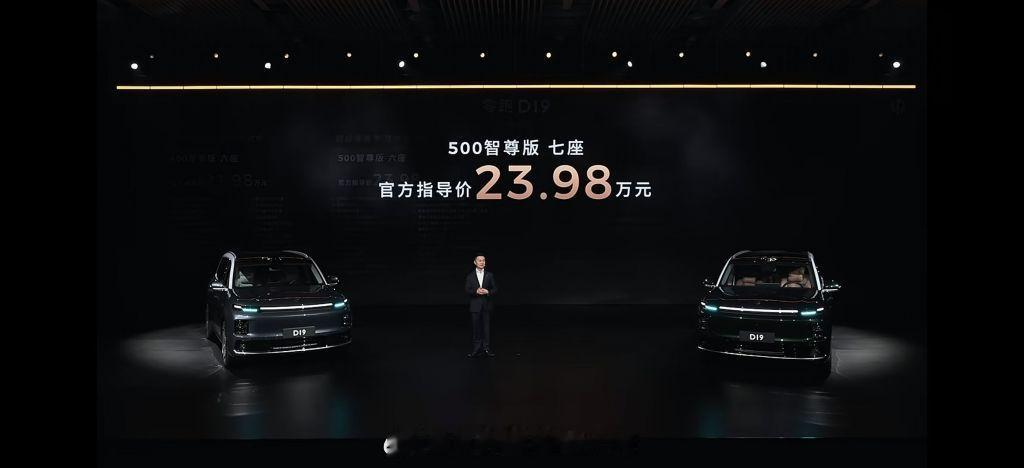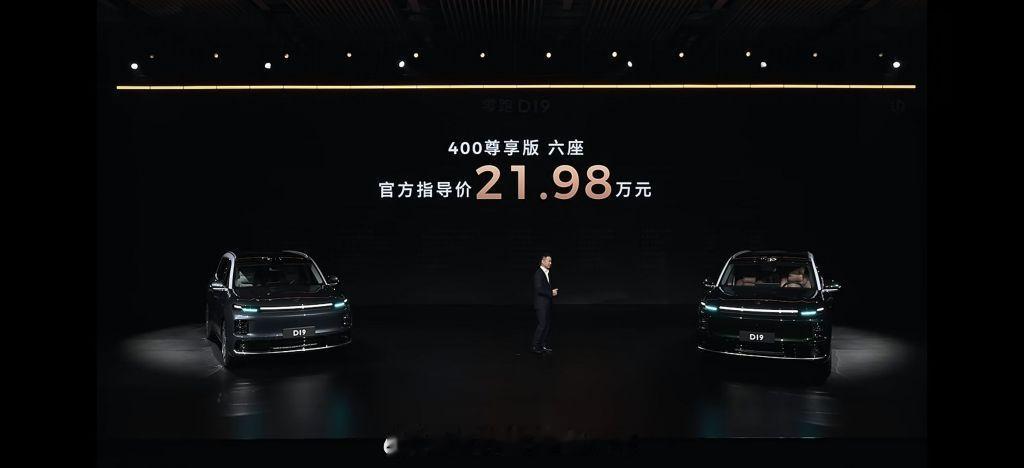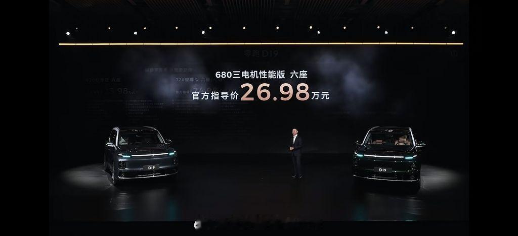 零跑D19 增程版400 尊享版(六座):21.98 万500 智尊版(六座/七座):23.98 万纯电版620 智尊版(六座):23.98 万720 智尊版(六座/七座):24.98 万680 三电机性能版(六座):26.98 万