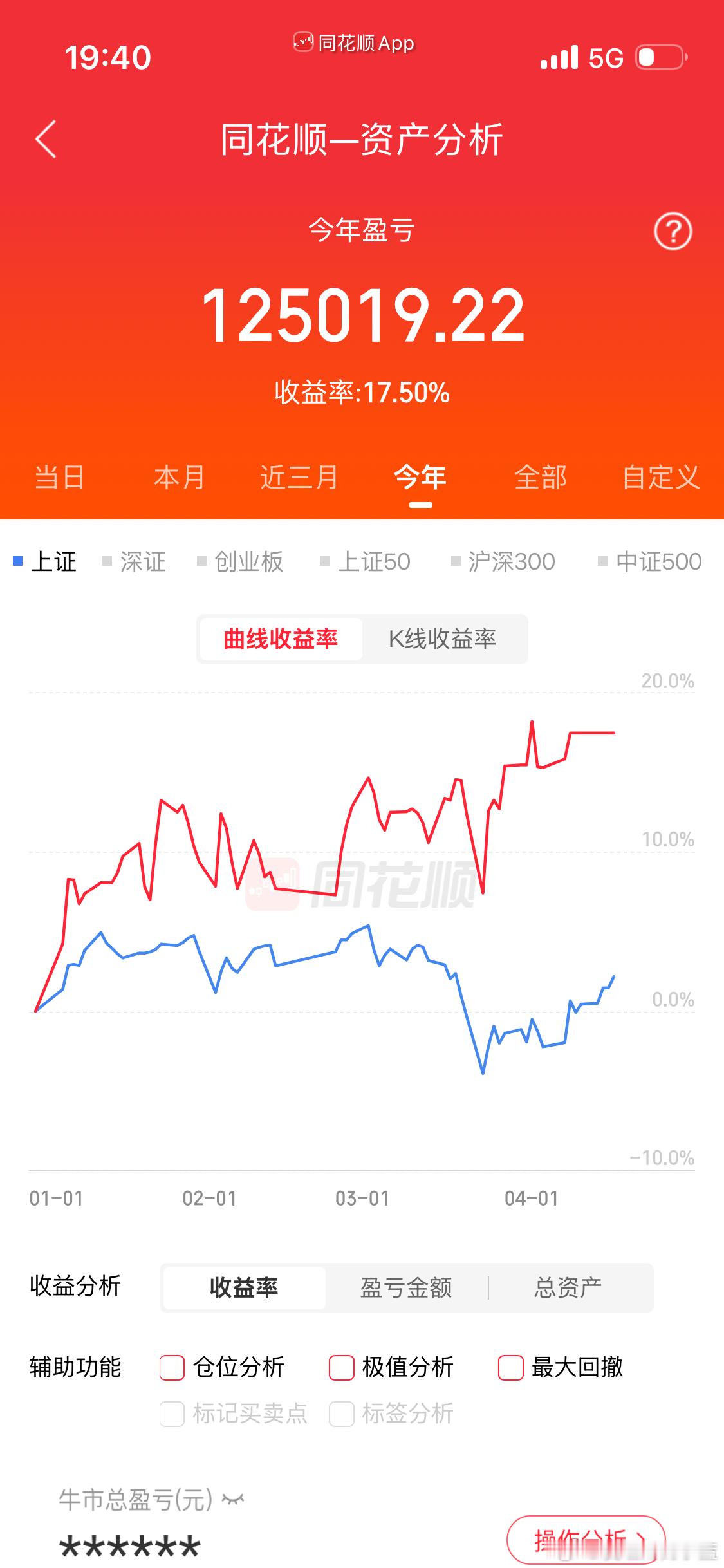 今年收益率小20个点。今天我把场内仓位降了很多。明天继续大涨我就开始踏空了…