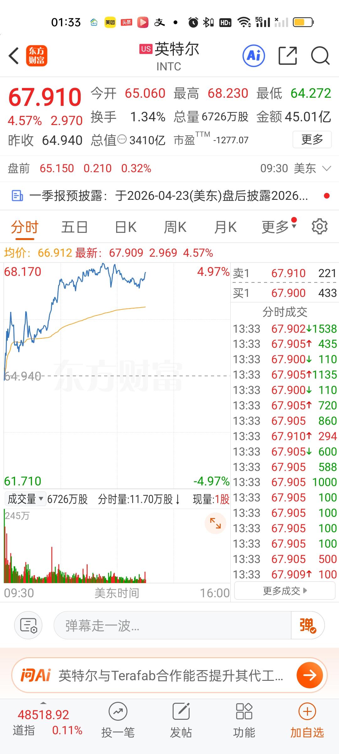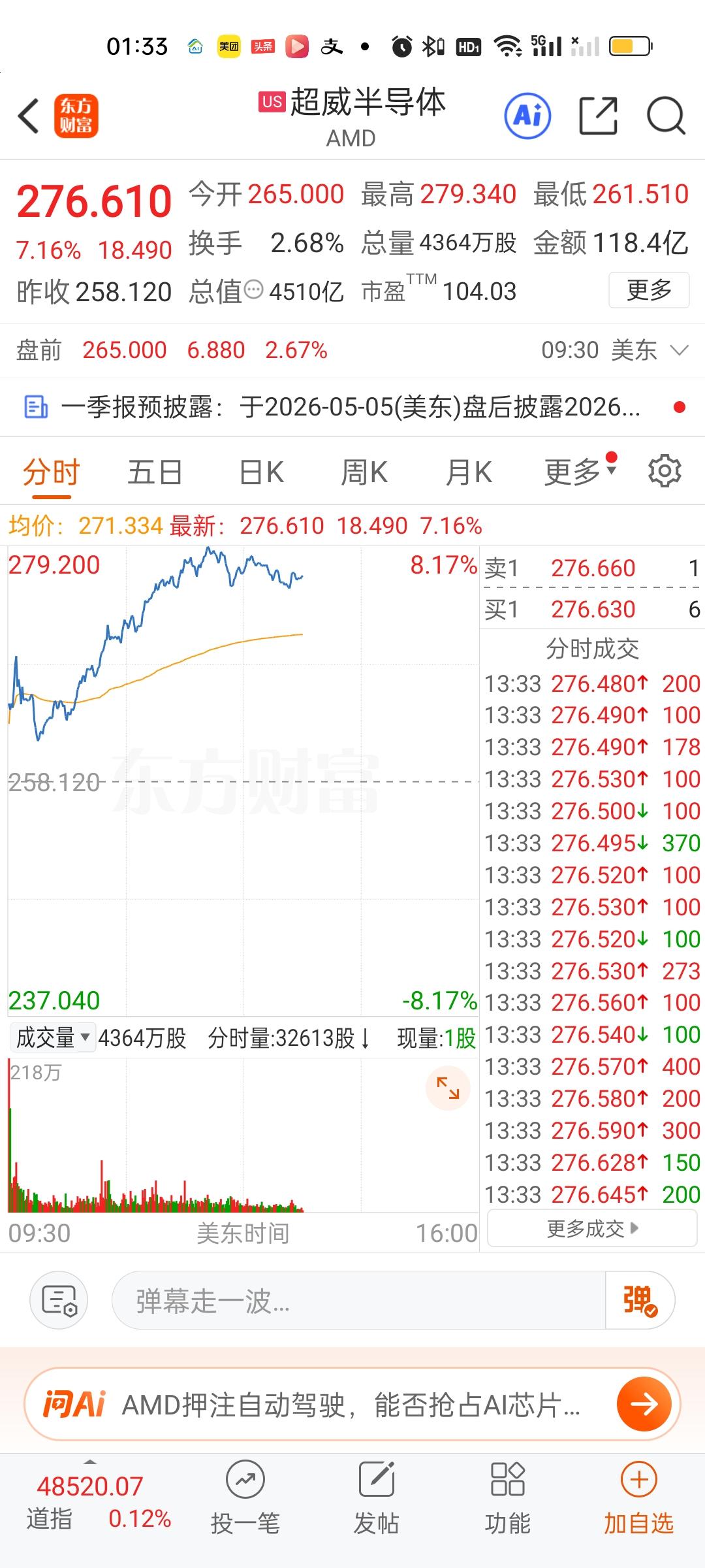 从美股现在的走势来看,AMD爆了,涨幅在7%以上,英特尔跟涨,涨幅也有4.5%左