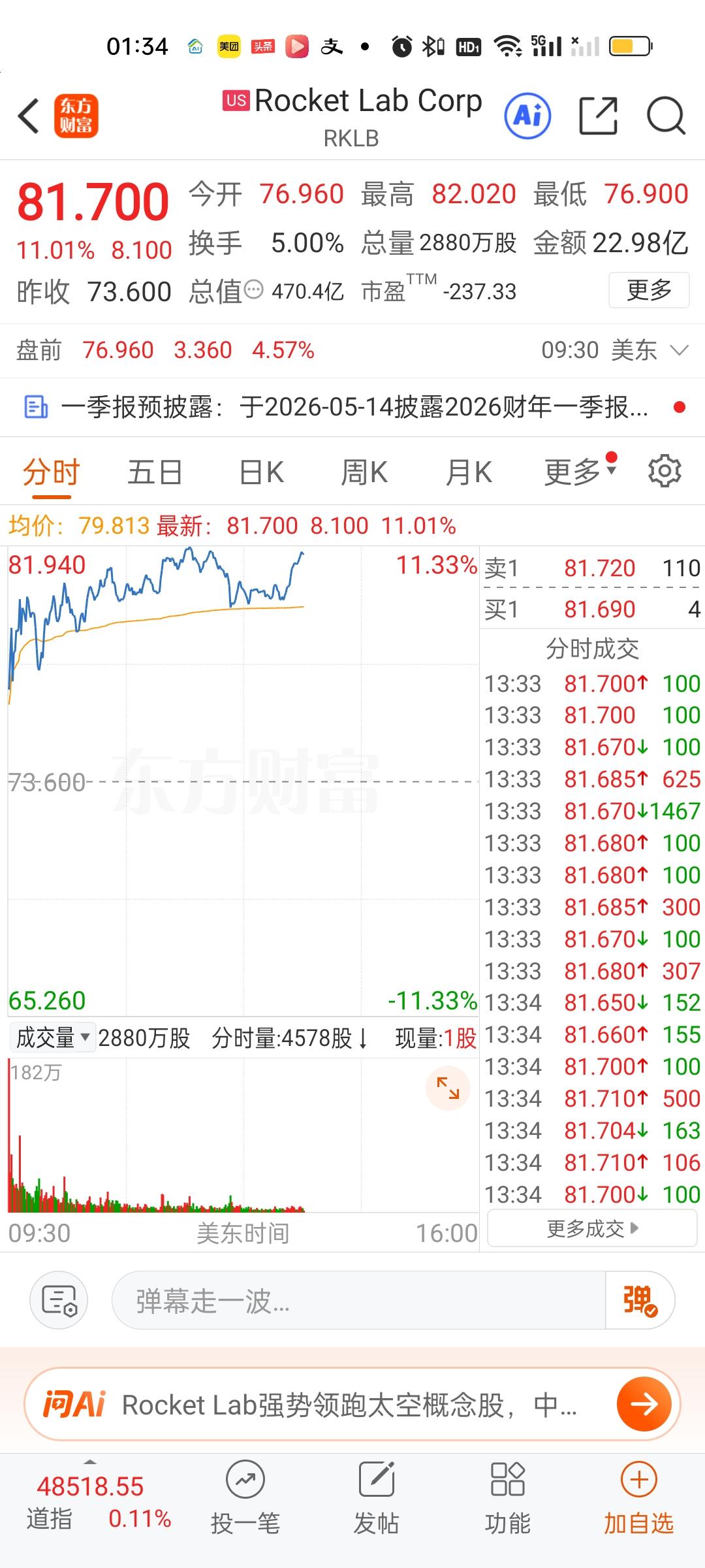 从美股现在的走势来看,AMD爆了,涨幅在7%以上,英特尔跟涨,涨幅也有4.5%左右,另外商业航天里面的火箭实验室也涨了11%以上。苹果,英伟达和特斯拉目前还是绿的,存储芯片板块目前表现也不好。