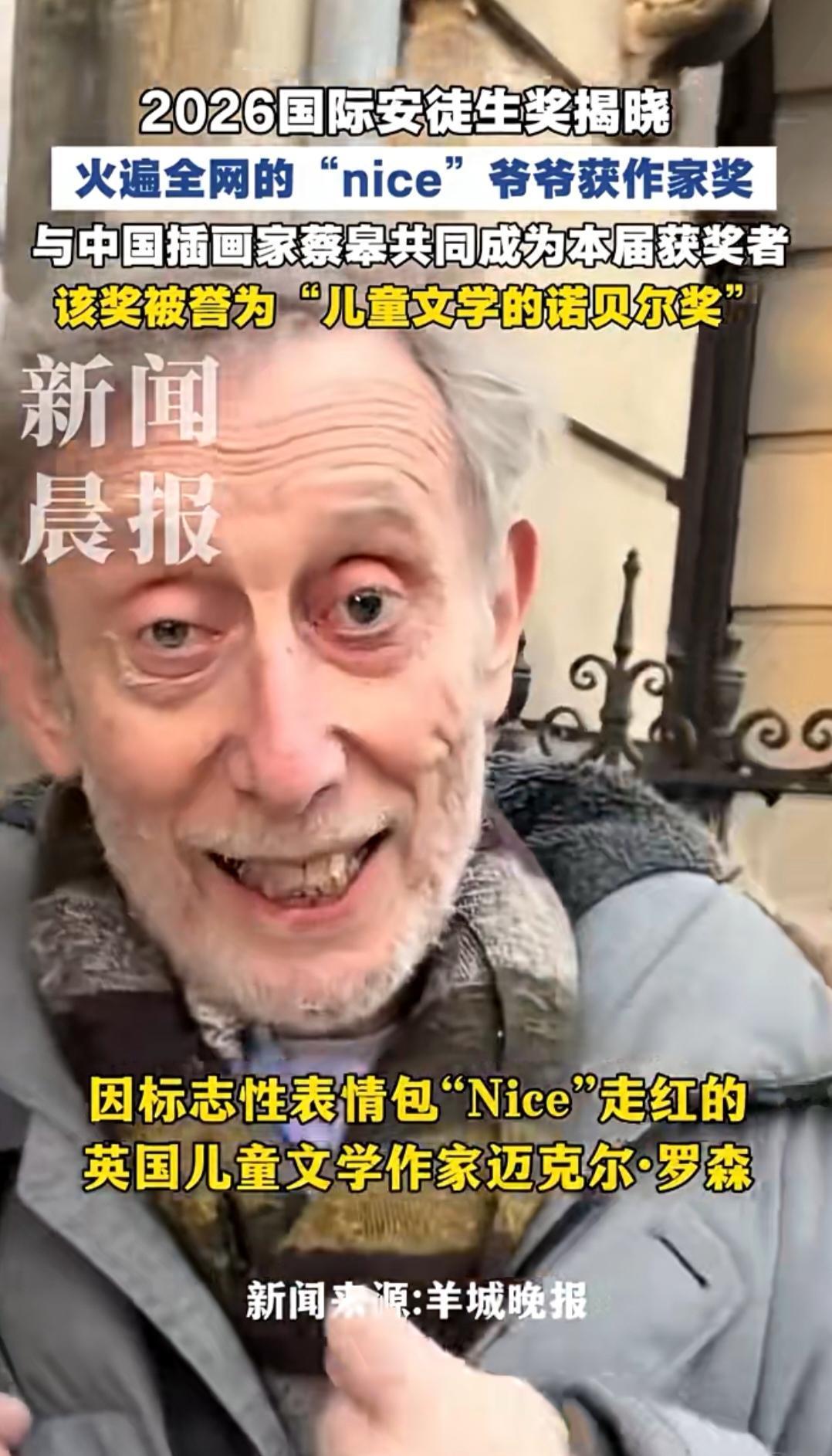 这位英国儿童文学作家迈克尔·罗森,因魔性“Nice”表情火遍全网,被网友亲切称为“Nice爷爷”。