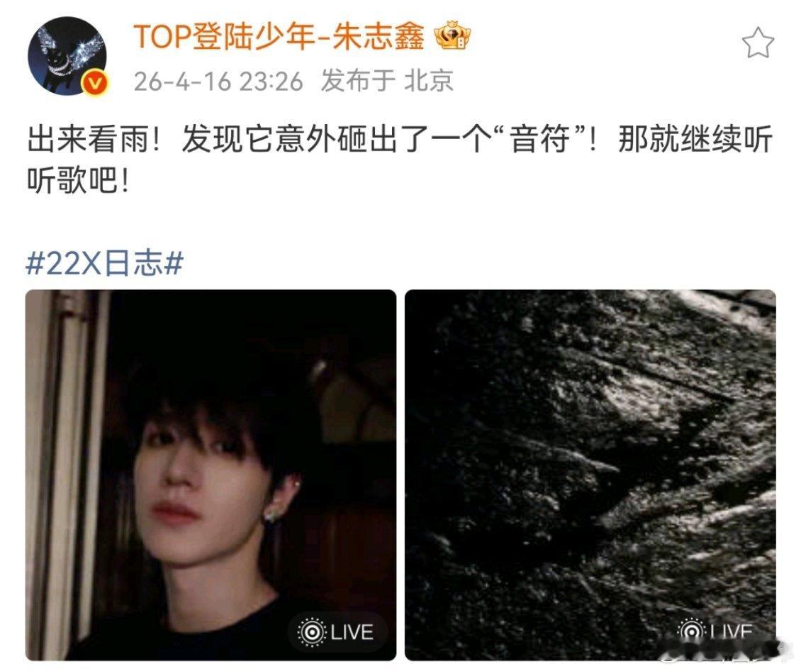 朱志鑫那就继续听听歌吧朱志鑫看雨发现音符善于发现生活小美好的朱志鑫太迷人了,雨天
