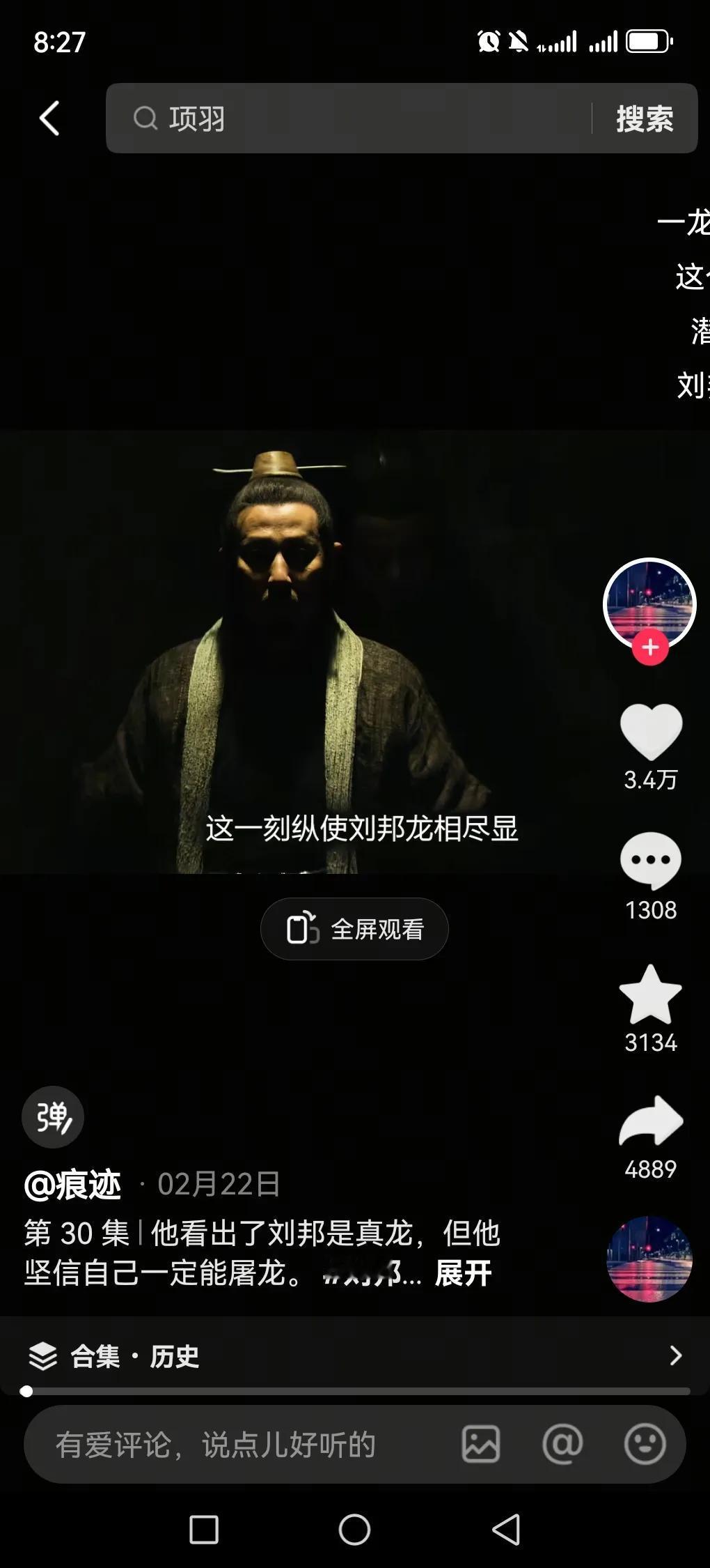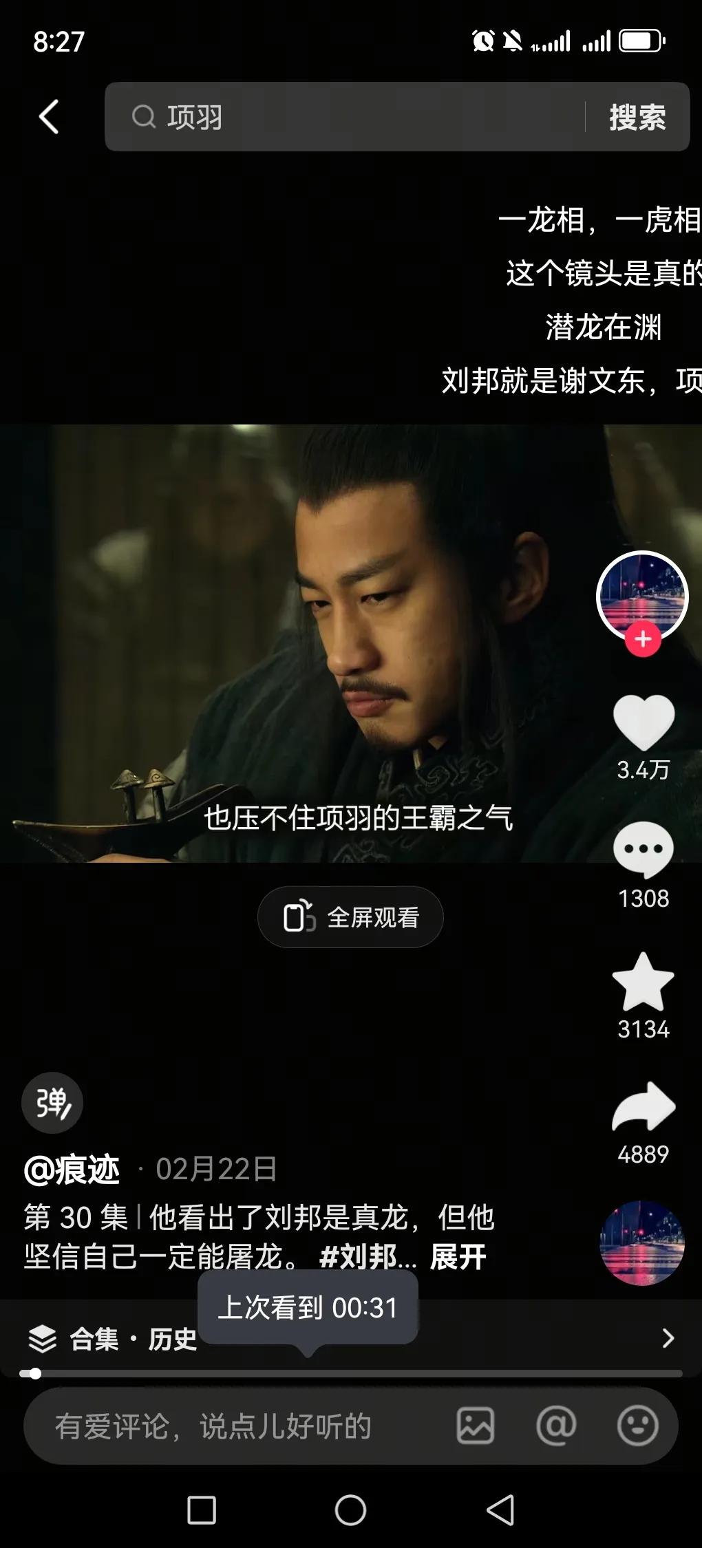 最近演项羽的何润东爆火,不过我觉得演刘邦的陈道明更绝。在《楚汉传奇》里,陈道明把刘邦那泼皮无赖还有鸿门宴龙相劲显演得更淋漓尽致。他能把刘邦的狡黠、野心和偶尔的市井气完美融合,仿佛刘邦就站在眼前。