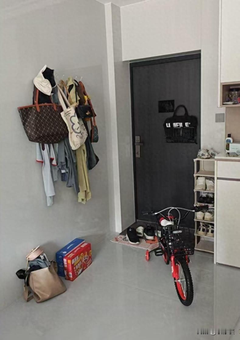 1. 入户悬空鞋柜+换鞋凳:之前总担心悬空积灰,结果打扫起来巨方便,扫地机器人直接钻进去,换鞋凳不用弯腰,老人小孩都省心,还能收纳常穿的鞋子,入户再也不凌乱。