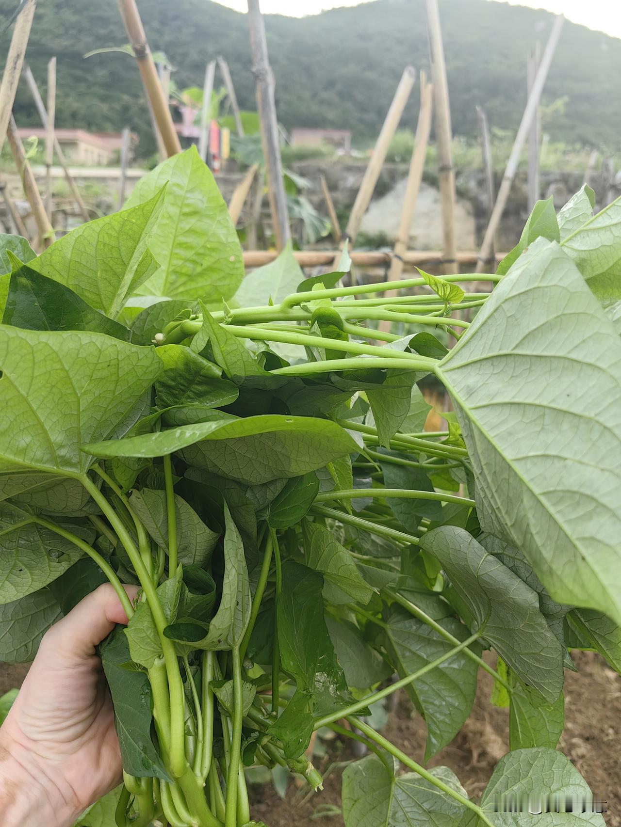 我当然却之不恭了,我跟着大嫂来到地里,转眼间,她就麻利地摘下一大把番薯叶。在旁边种地的两个大嫂看到我,也纷纷问我还要不要?想吃的话随时来地里摘。