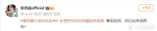 章若楠工作室艾特想把你和时间藏起来官微章若楠方回应拍戏走神 章若楠工作室艾特想