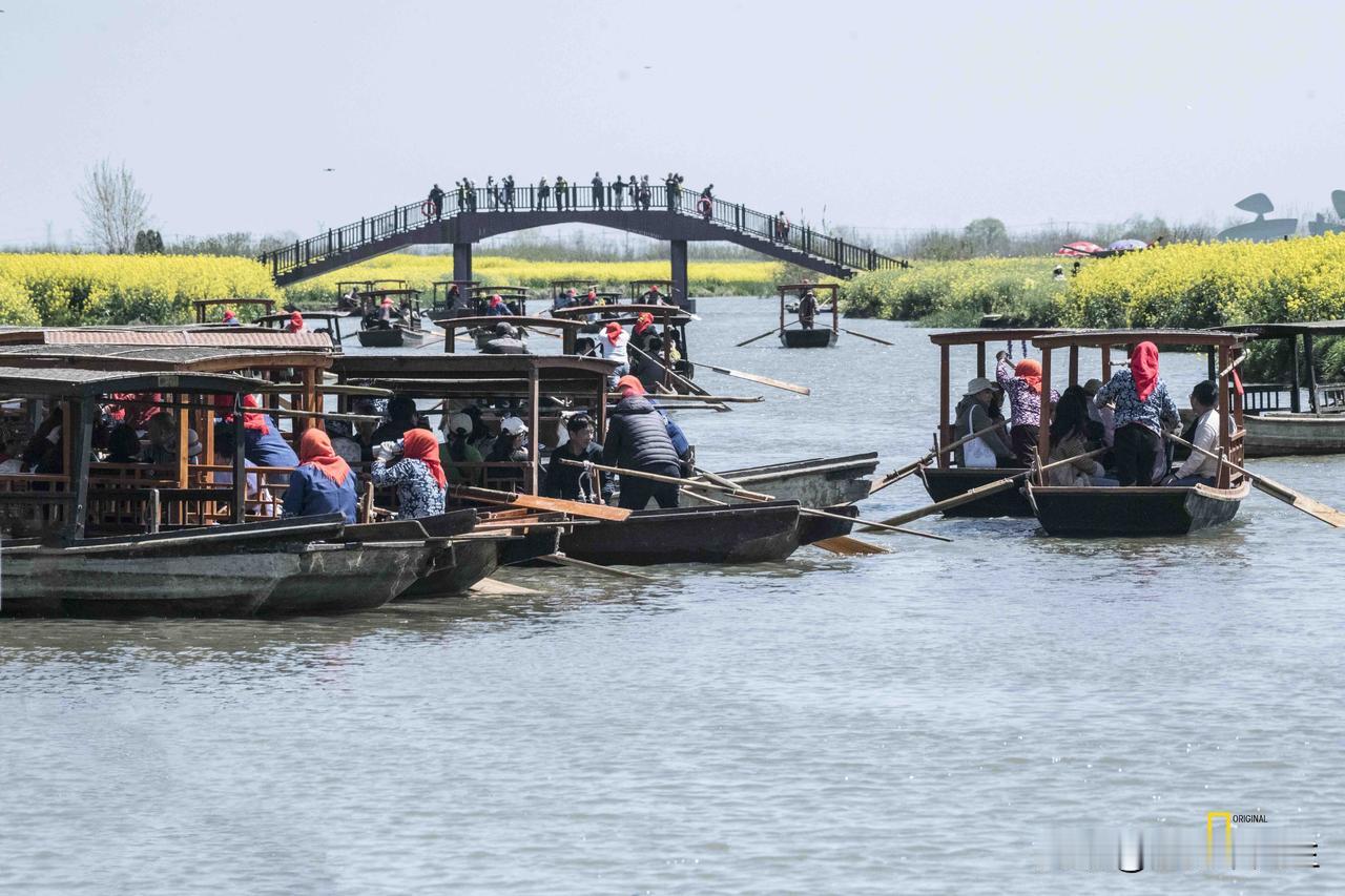 千垛水乡的春,藏在摇橹的吱呀里,乌篷船挤着春水,两岸油菜花燃成金绸,船娘的红头巾晃过,便漾开了一整个江南的热闹。