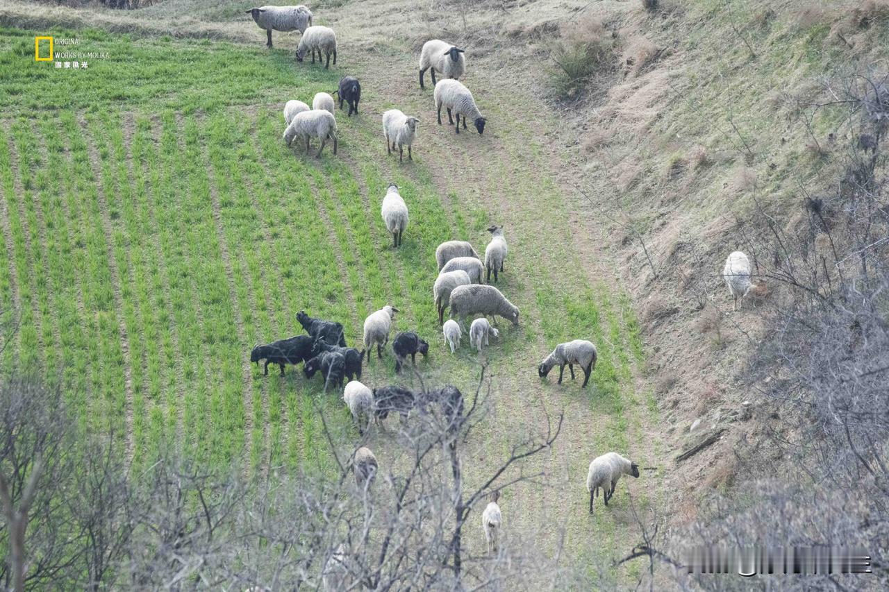 晋地的山坳里,老砖墙上的花枝刚绽出新蕊,坡下的羊群踩着青草地慢悠悠踱步。旧时光的