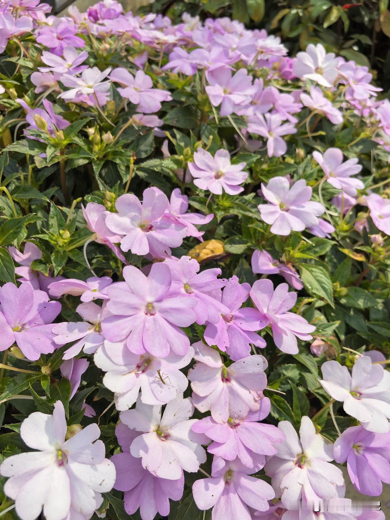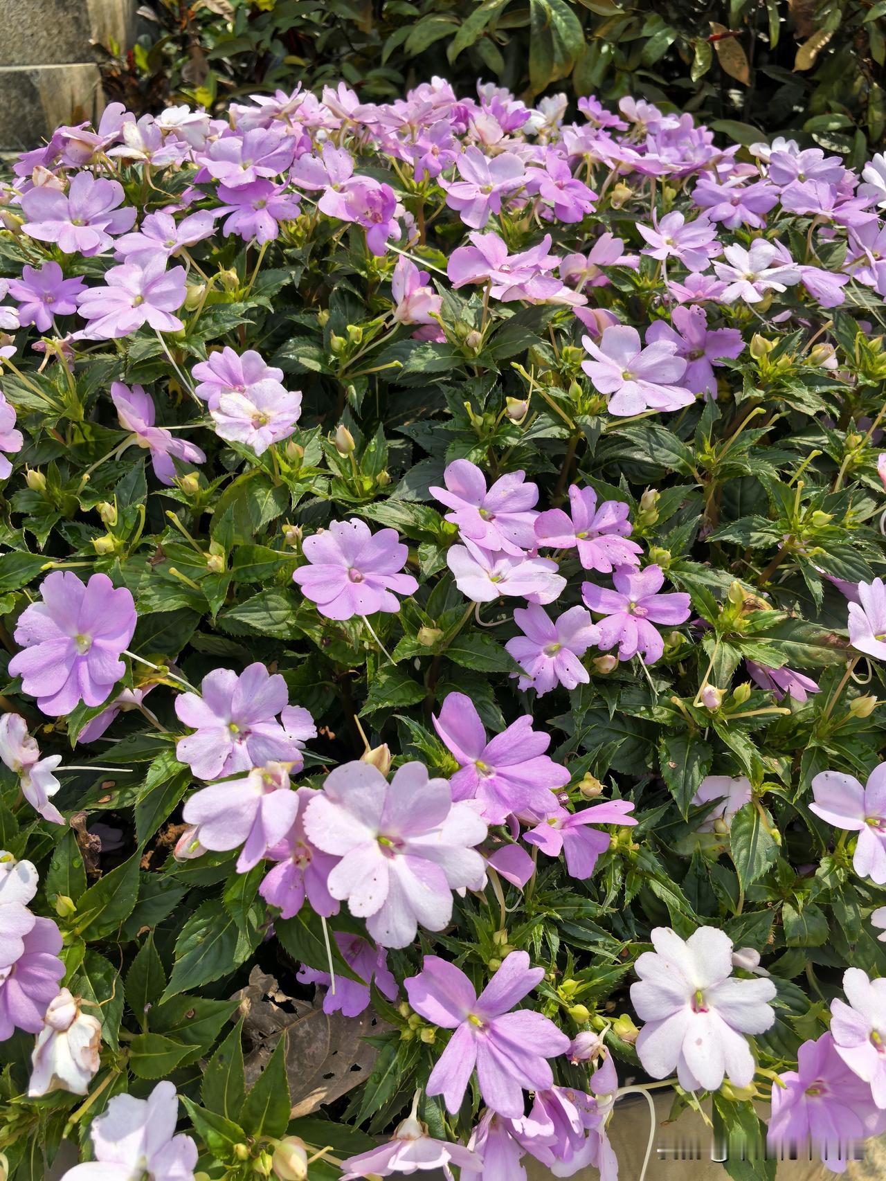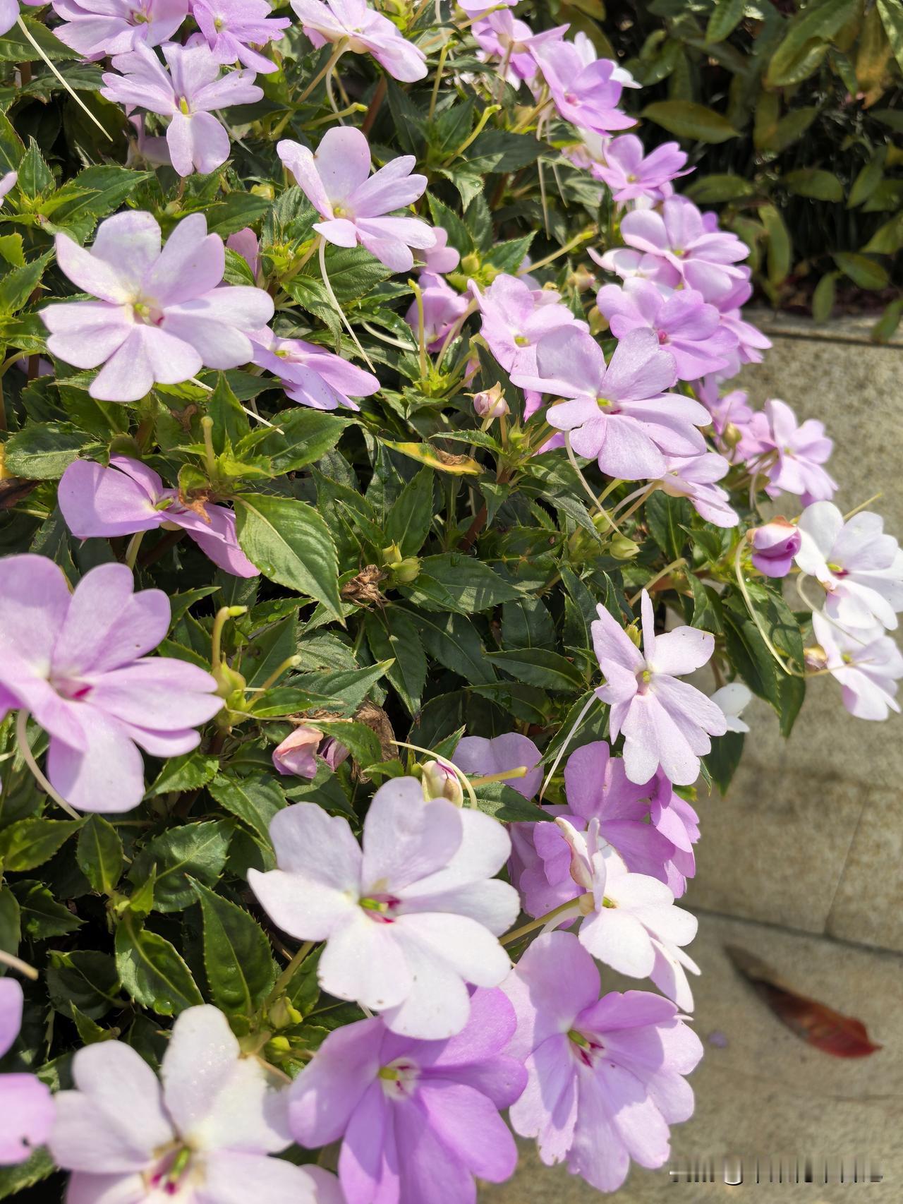 绿叶丛中绽丽容 粉花斗艳竞娇妍 赏心妙韵迷人目 小巧娇姿醉客怜 粉紫色小花