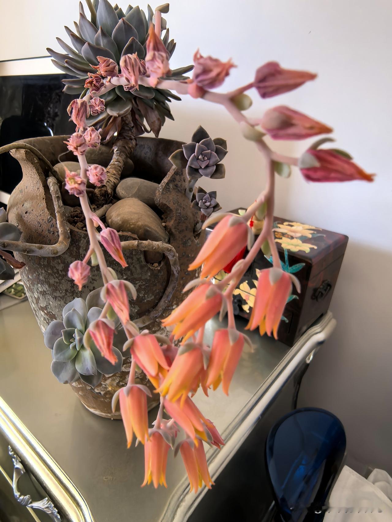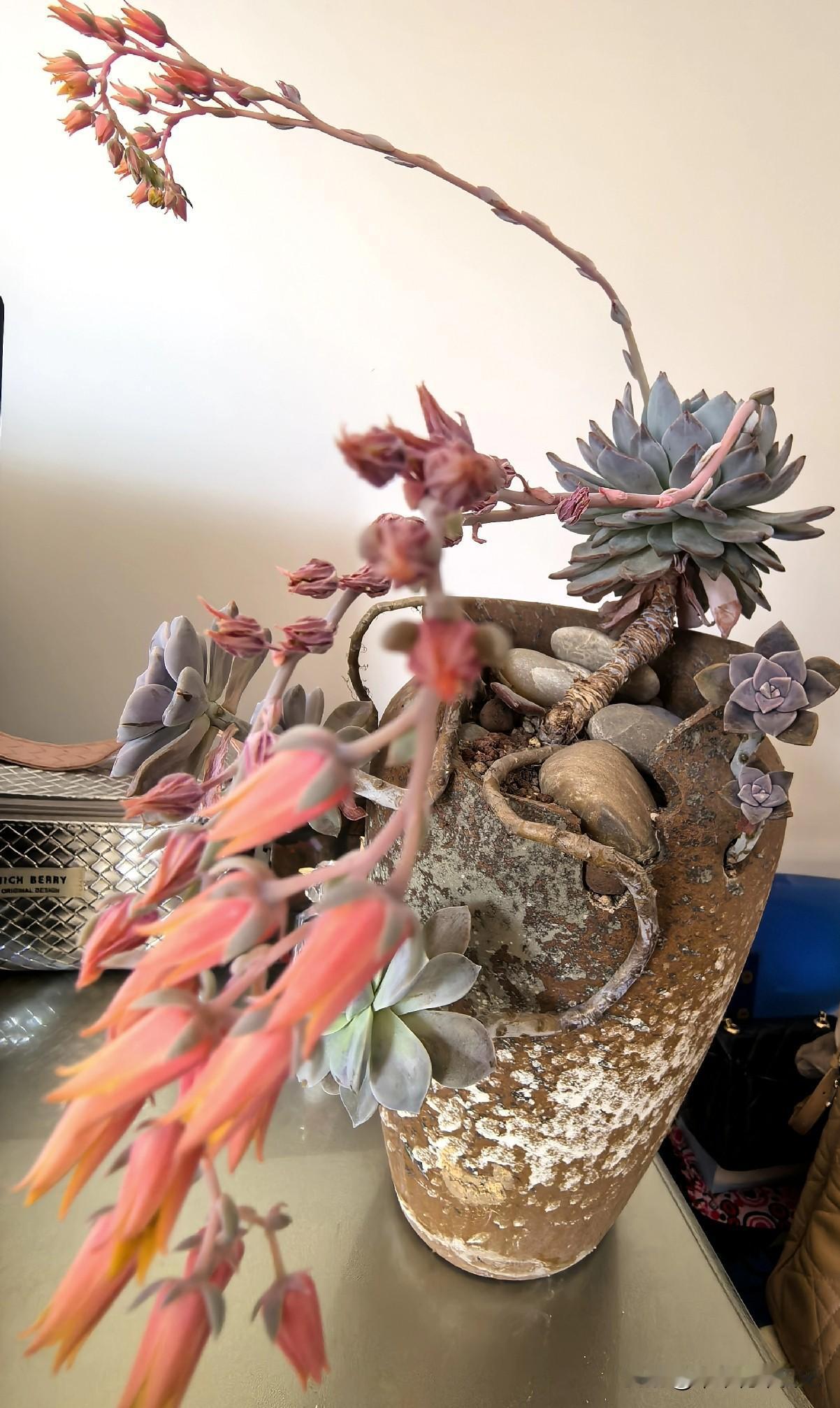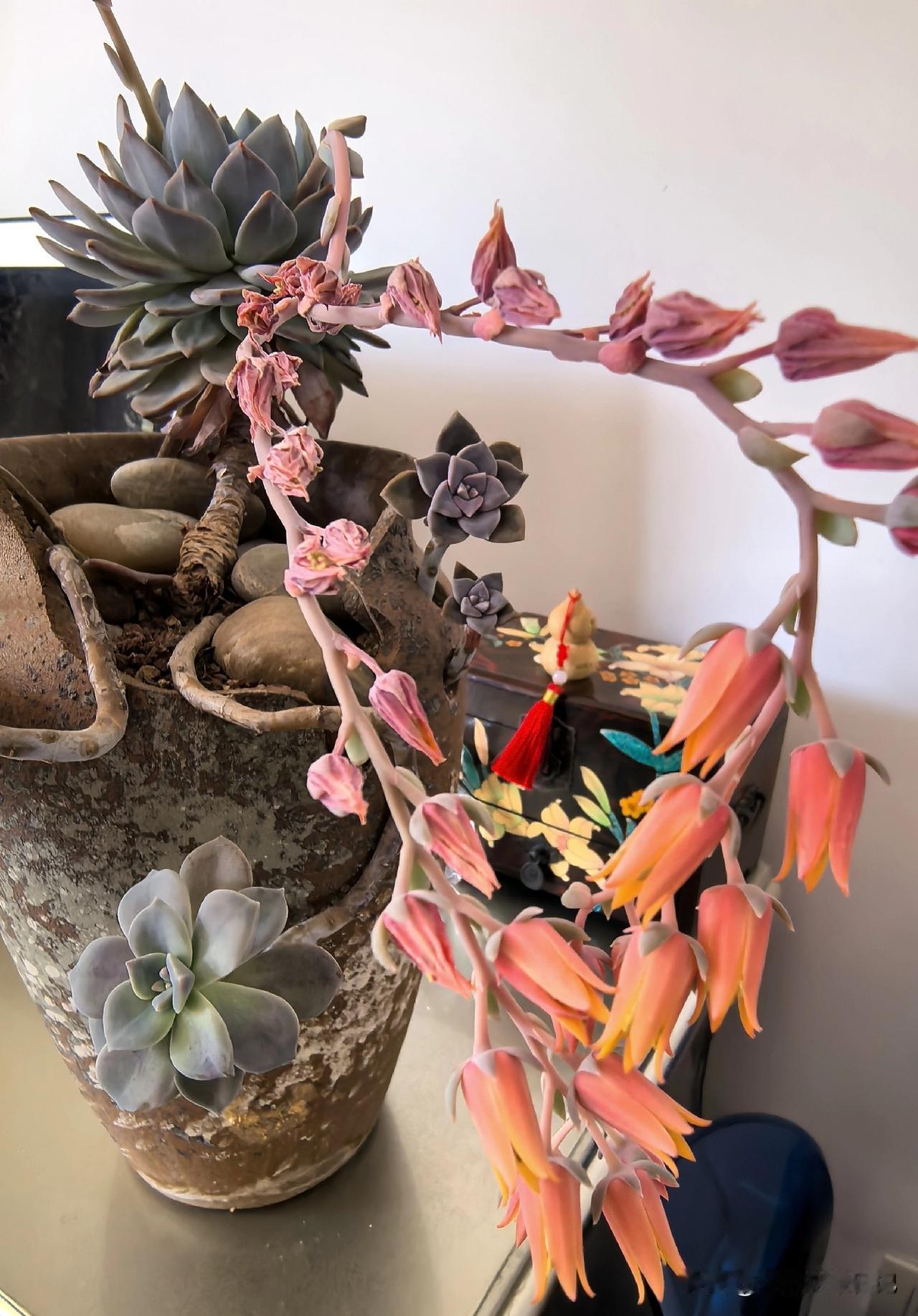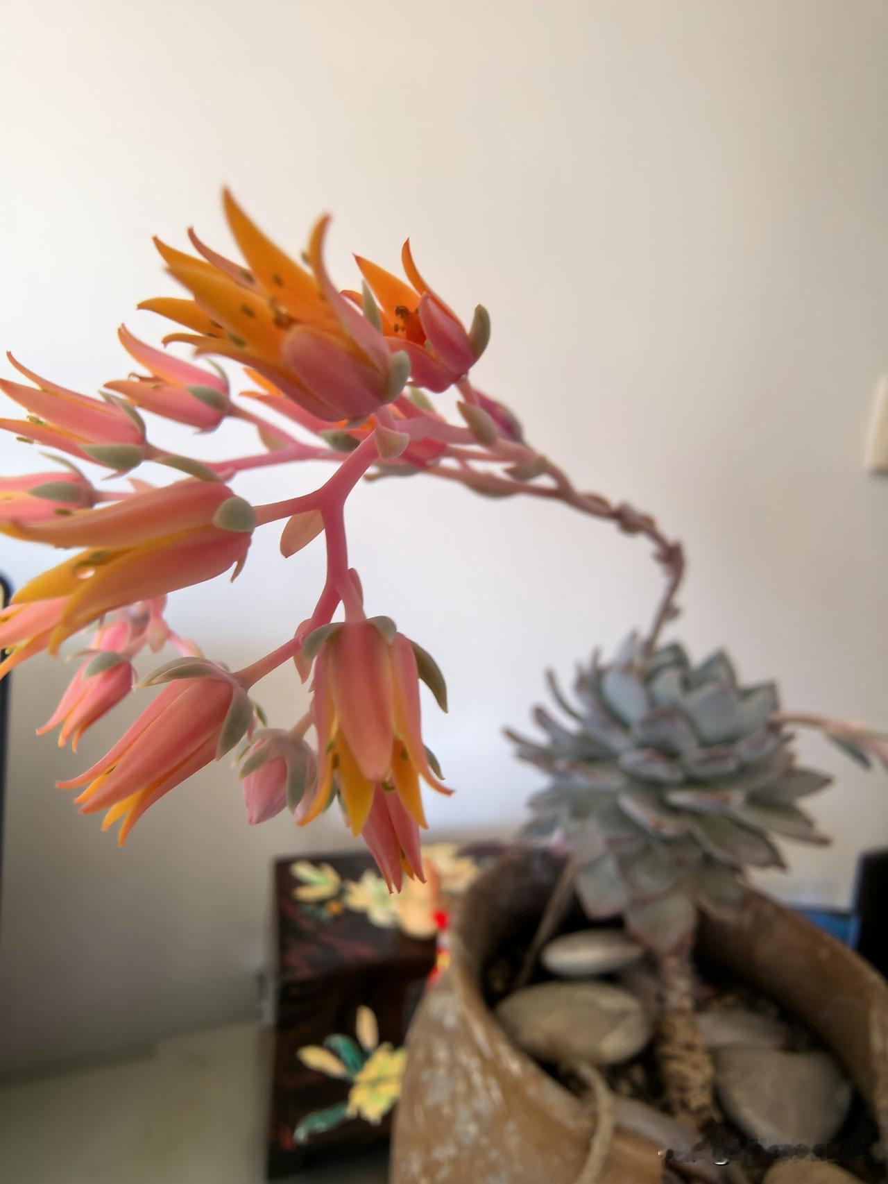 春暖花开,家里的肉肉长出了花箭,颜色有橙色,白色,真是美不胜收,与友友们共赏。欣赏完要将花箭剪去,才不影响肉肉的生长,祝大家开心快乐每一天!