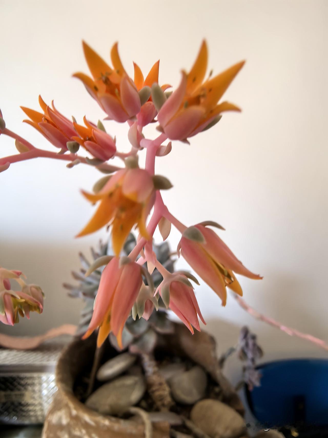 春暖花开,家里的肉肉长出了花箭,颜色有橙色,白色,真是美不胜收,与友友们共赏。欣