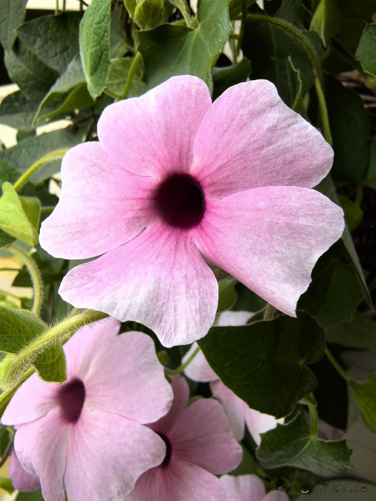 黑眼花 绿叶丛中,粉花妍丽 娇柔粉嫩,悄然绽放 细细赏之,美妙非常 心旷神怡,大