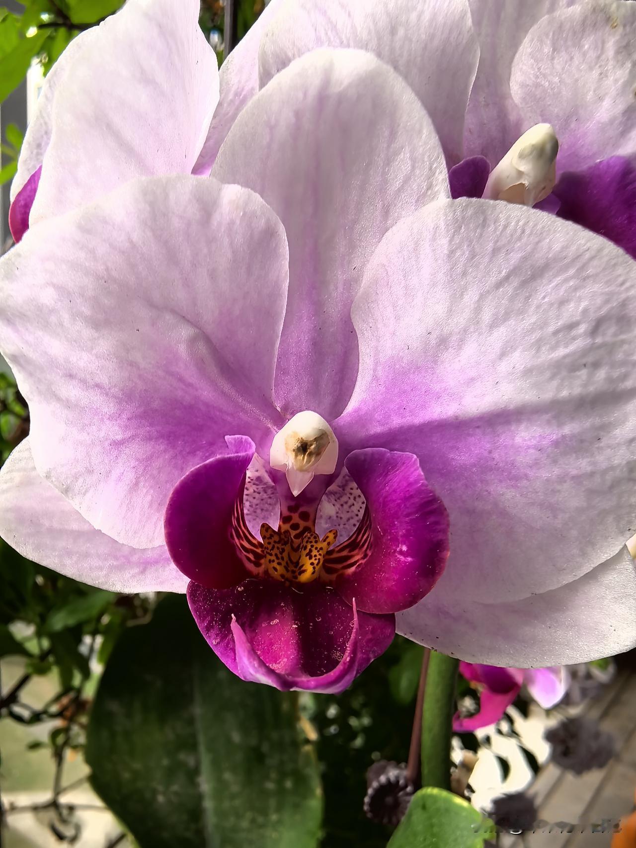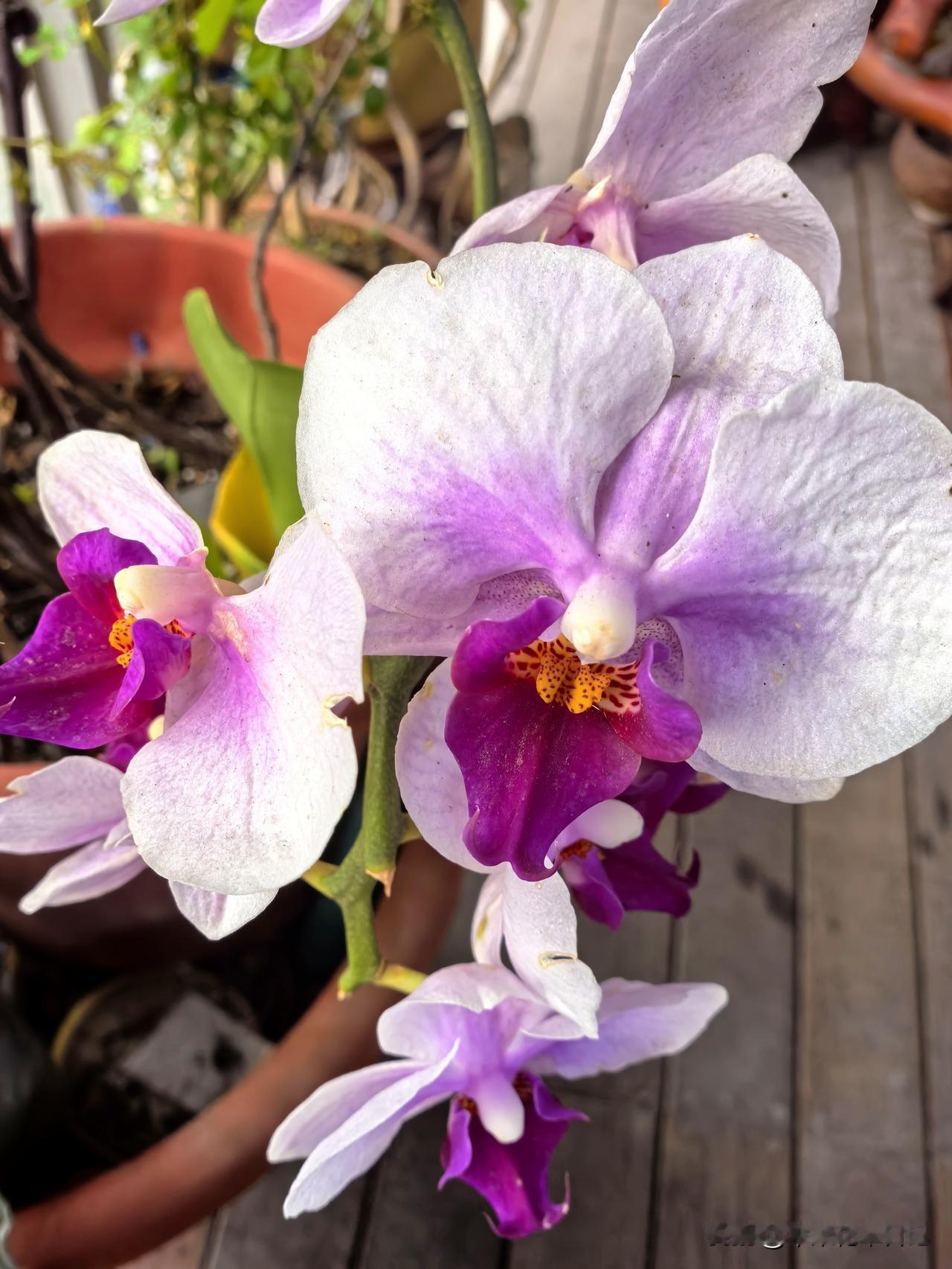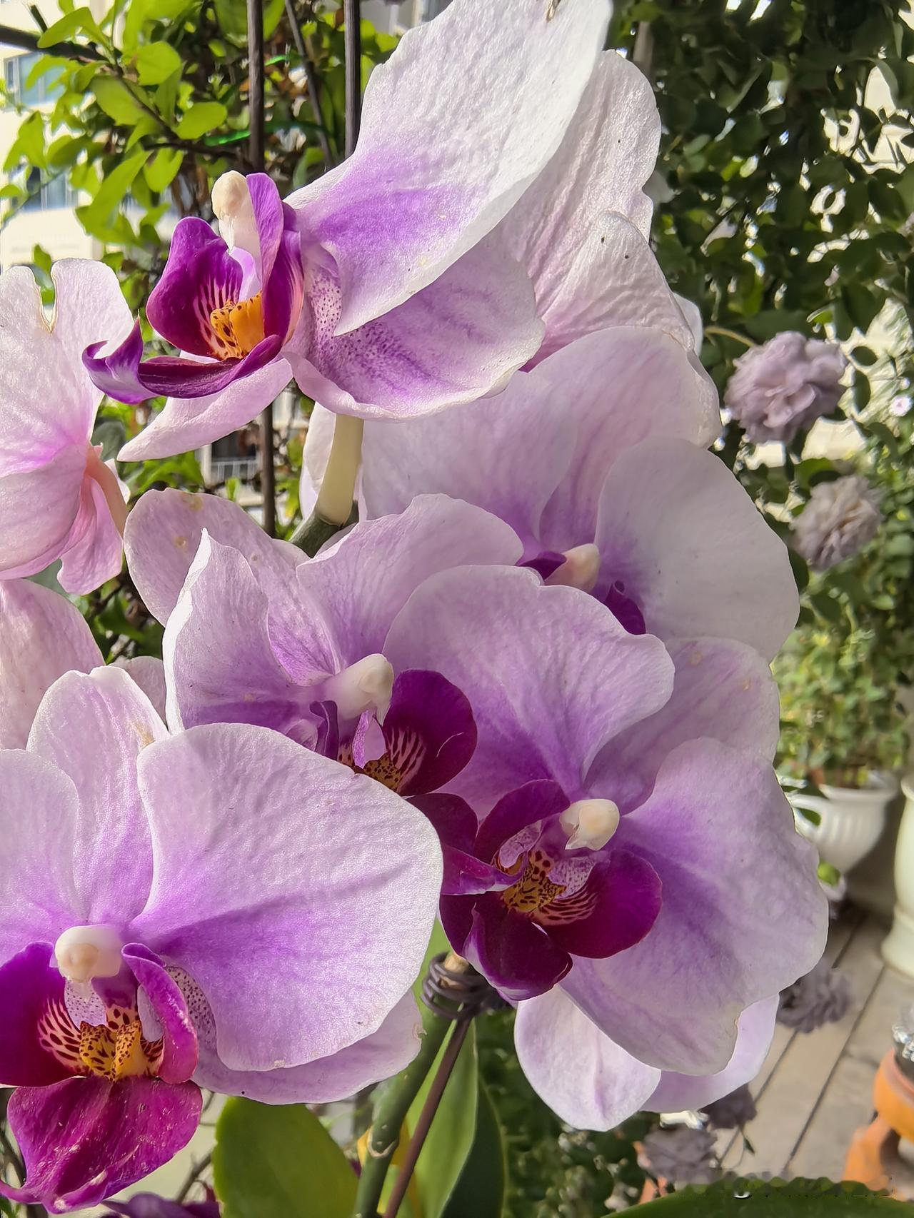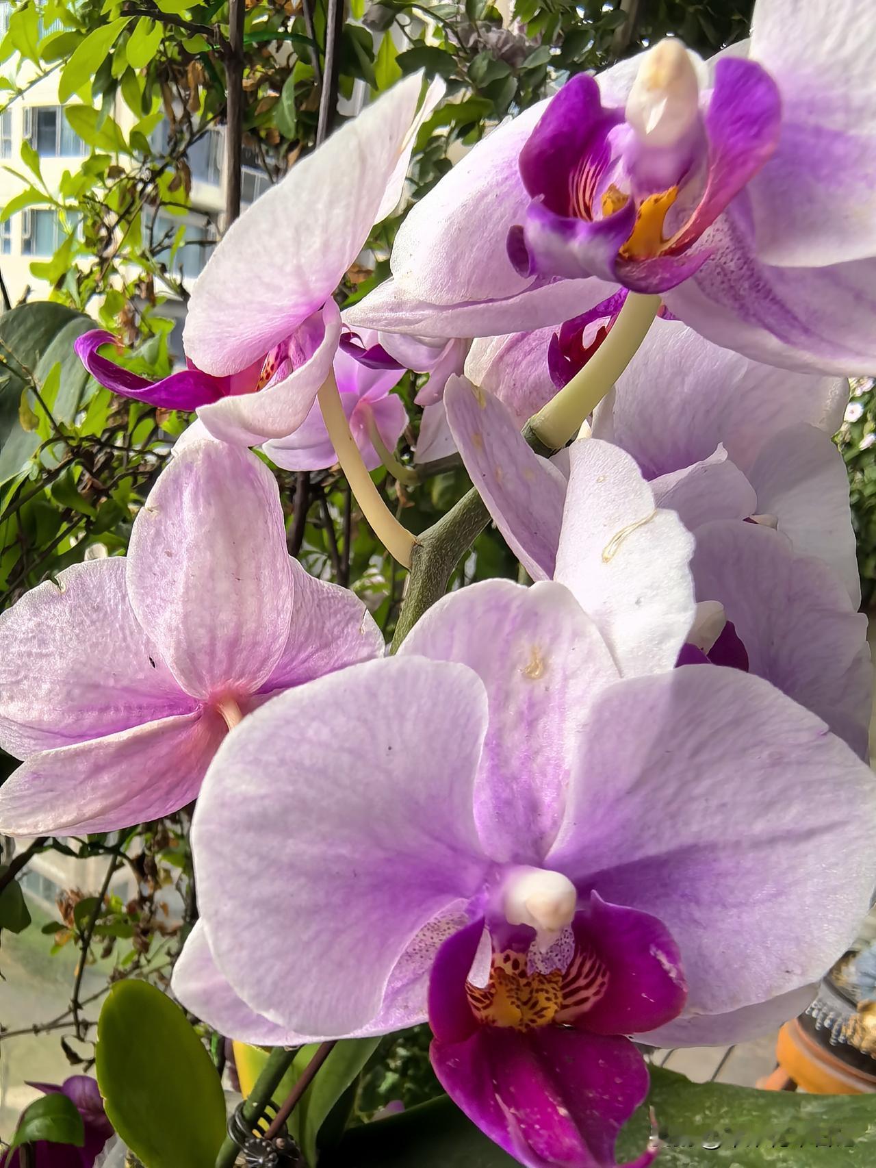 蝴蝶兰 紫韵漫流妍 美态绽芳颜 翩跹舞姿妙 悦目意陶然