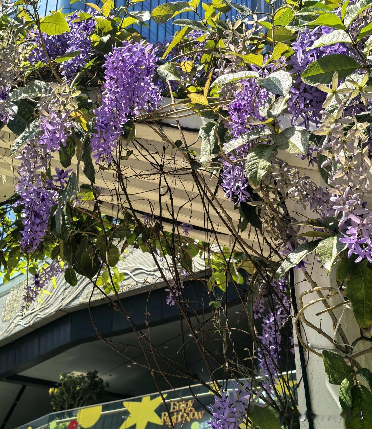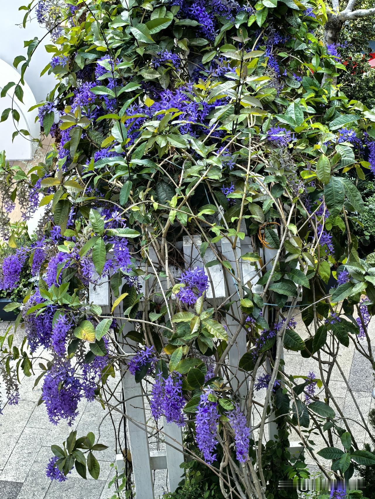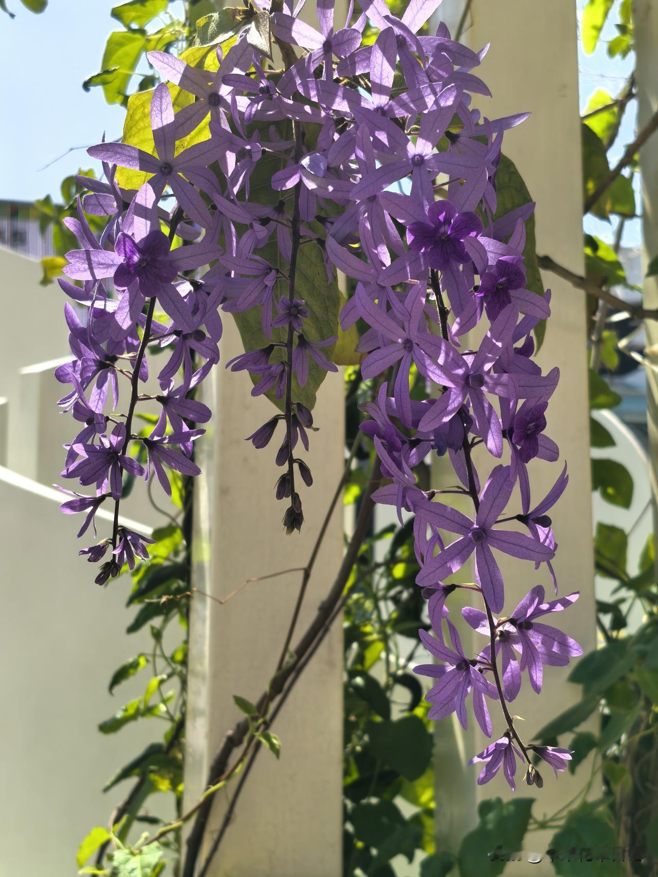蓝花藤 绿叶丛间绽丽妍 紫花烂漫韵娇绵 心怡目悦呈佳景 串串随风舞翩跹 分享手