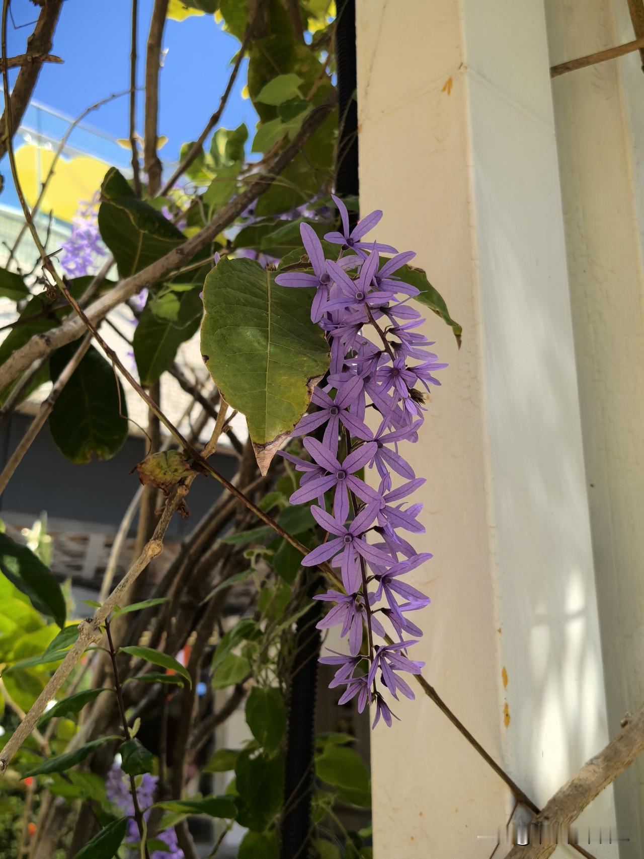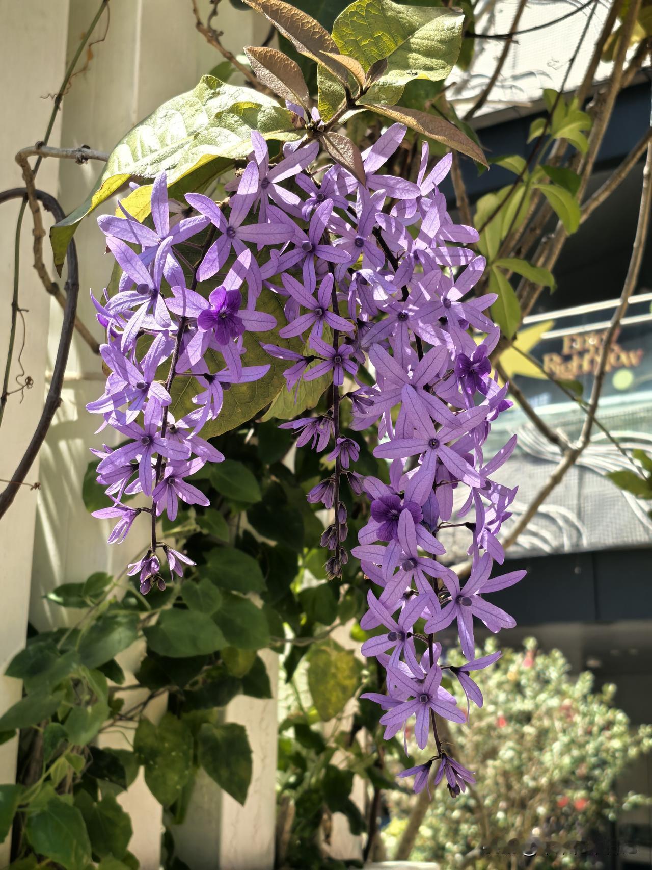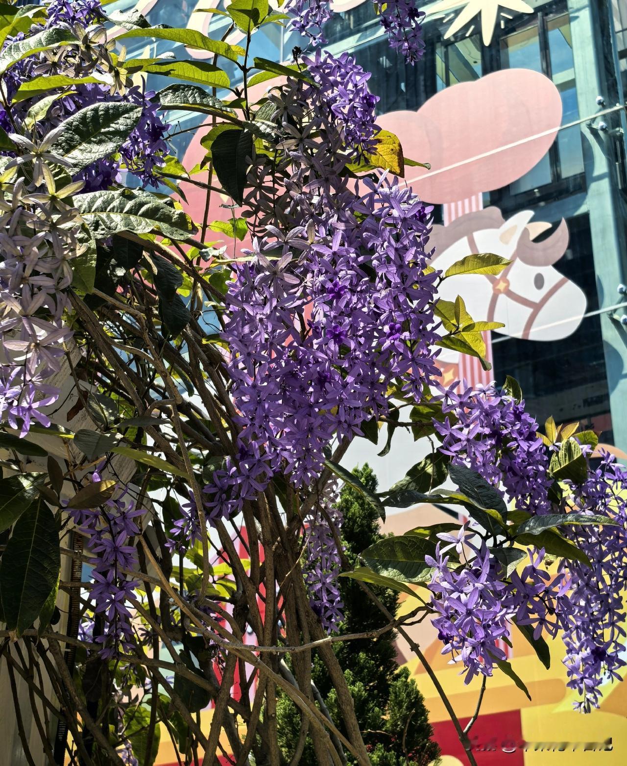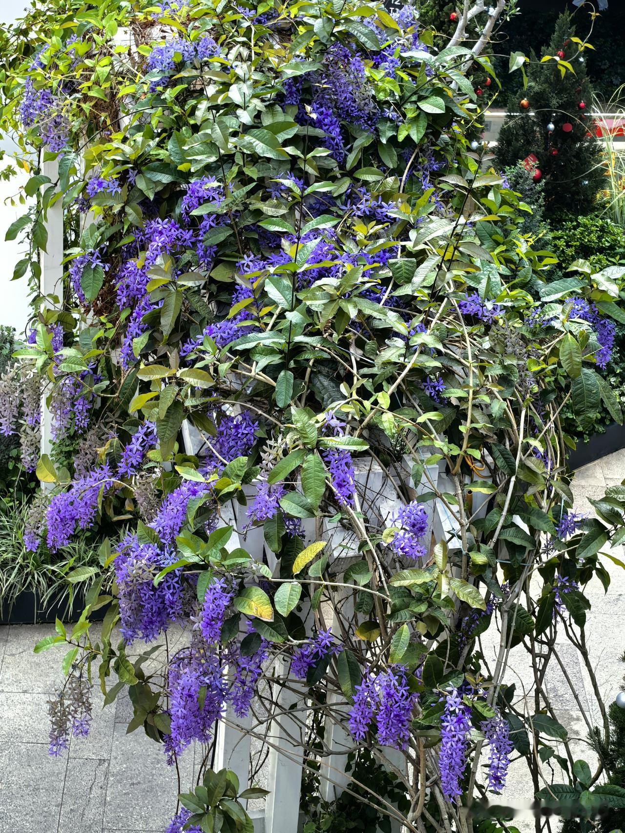 蓝花藤 绿叶丛间绽丽妍 紫花烂漫韵娇绵 心怡目悦呈佳景 串串随风舞翩跹 分享手