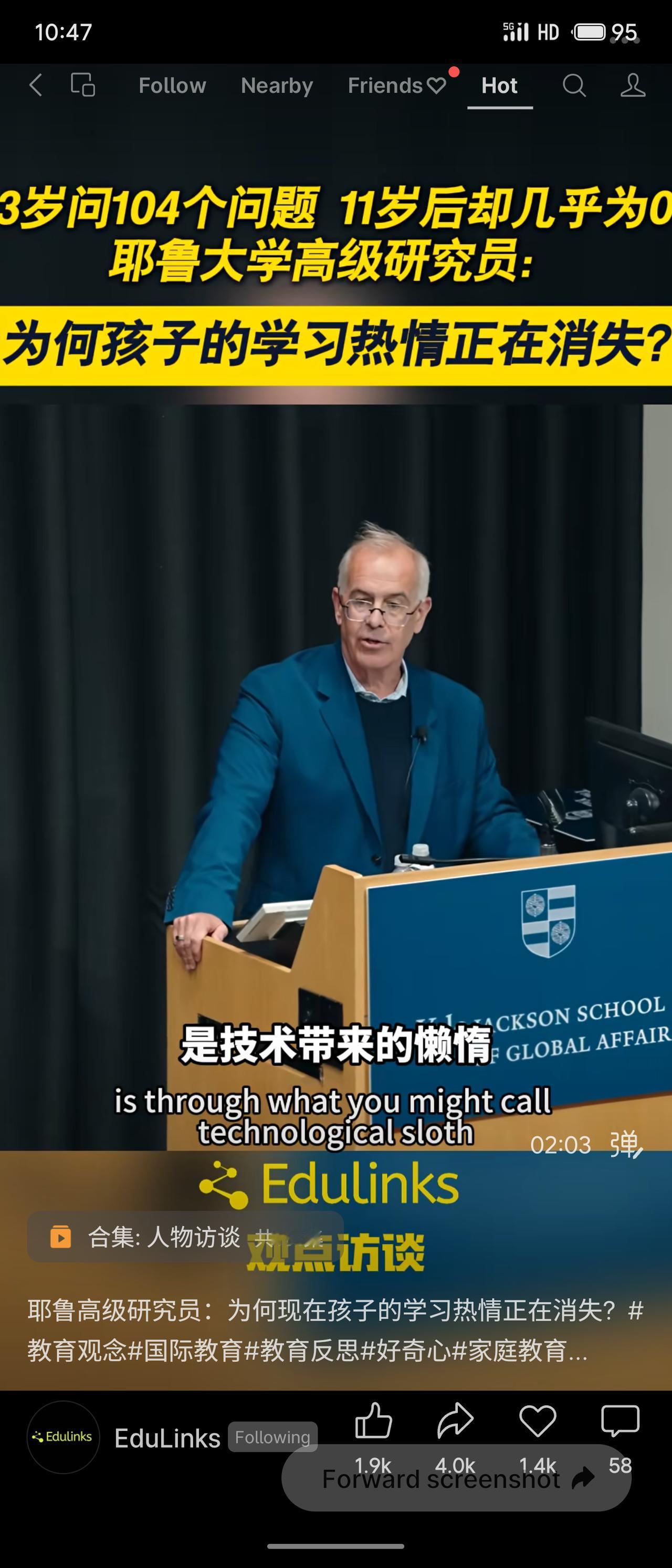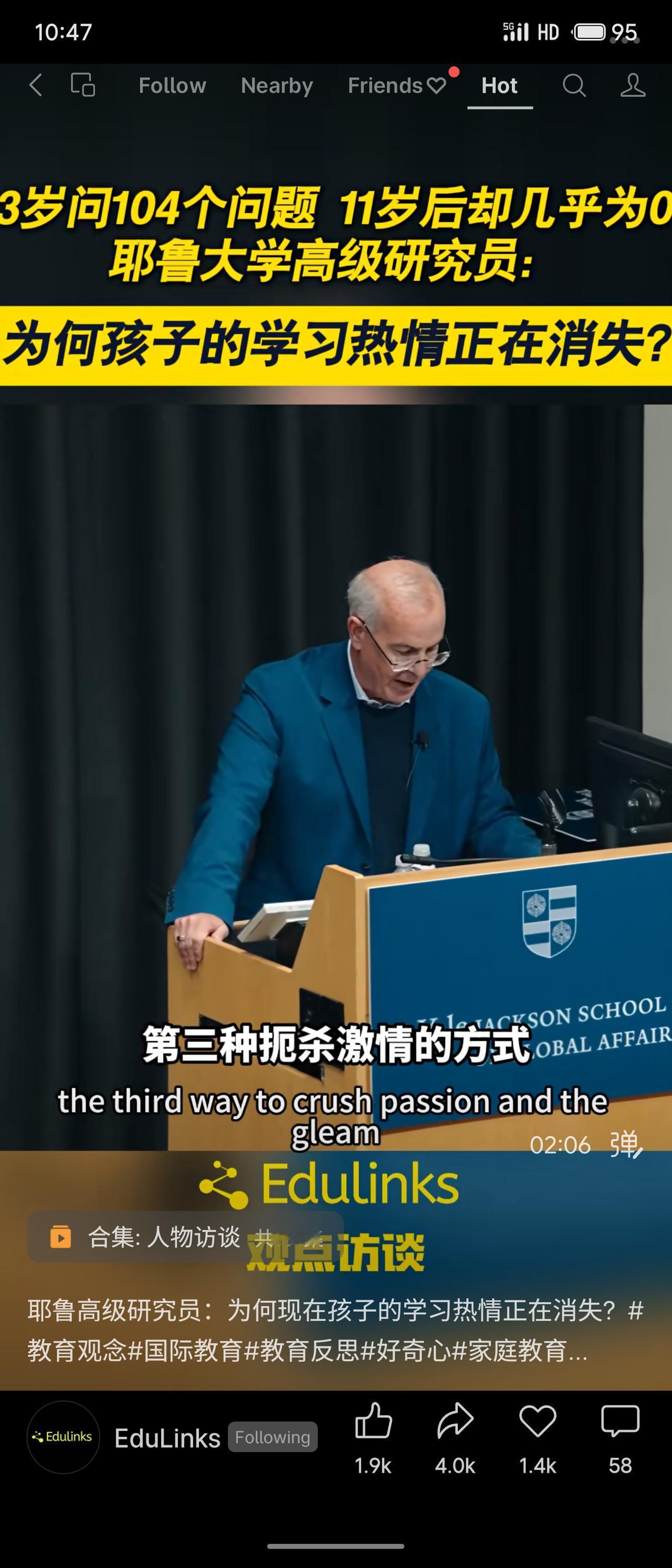 耶鲁大学高级研究员大卫·布鲁克斯指出:孩子3岁时能问104个问题,11岁后提问几乎为零,学习热情正在消失。他总结了四种扼杀激情的力量:一是过度理性化,让直觉与好奇被规则取代;二是“计算思维”,凡事只讲效率与结果,忽视探索本身;三是技术带来的懒惰,答案来得太容易,思考变浅;四是信念的丧失,孩子看不到学习的意义与未来。这些因素共同导致了好奇心的衰退。