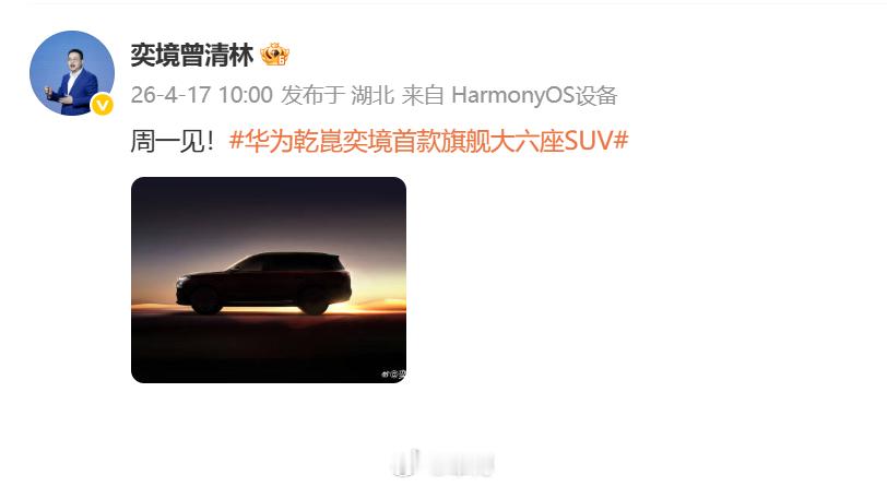 华为乾坤旗舰大六座奕境首款旗舰大六座SUV周一见,奕境的首款旗舰大6座,终于要亮相了。