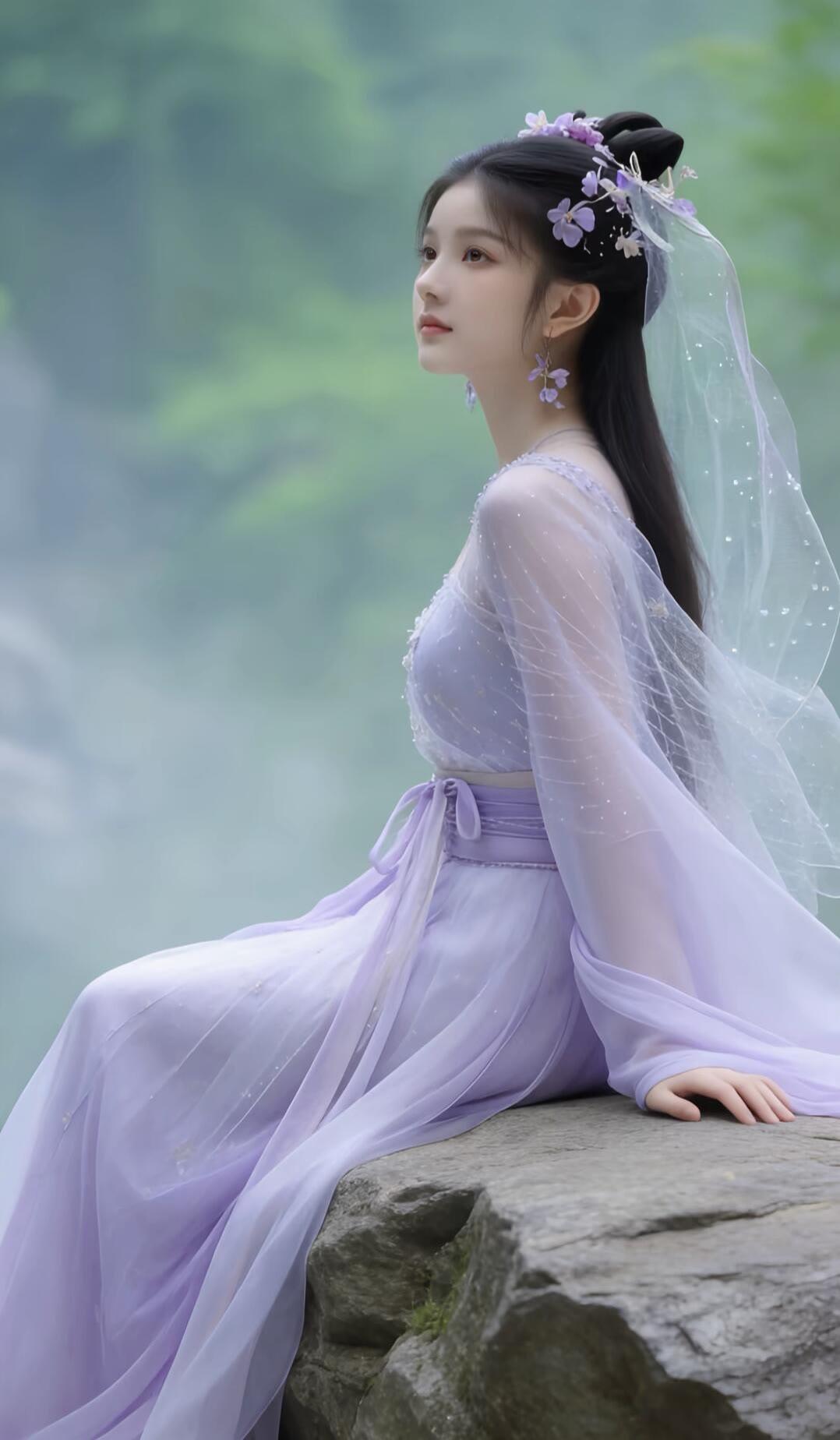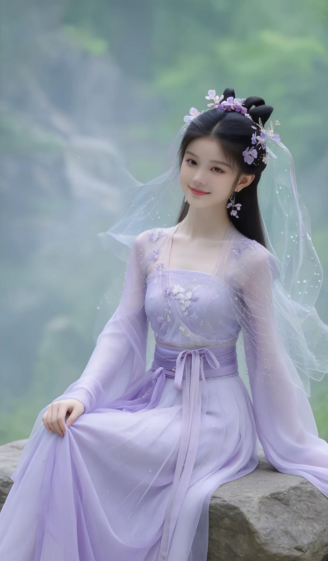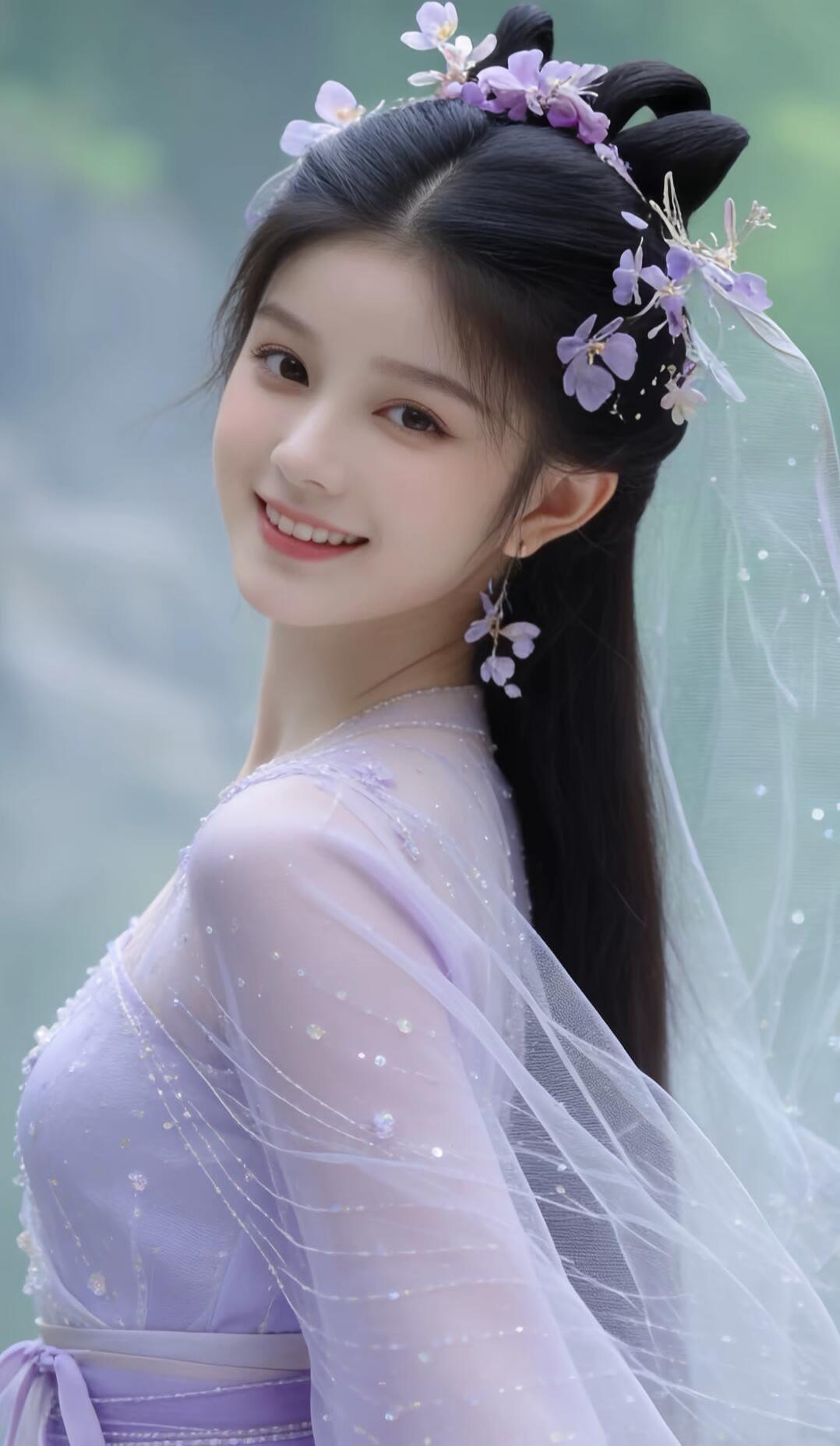 紫衣飘飘,笑靥如花。