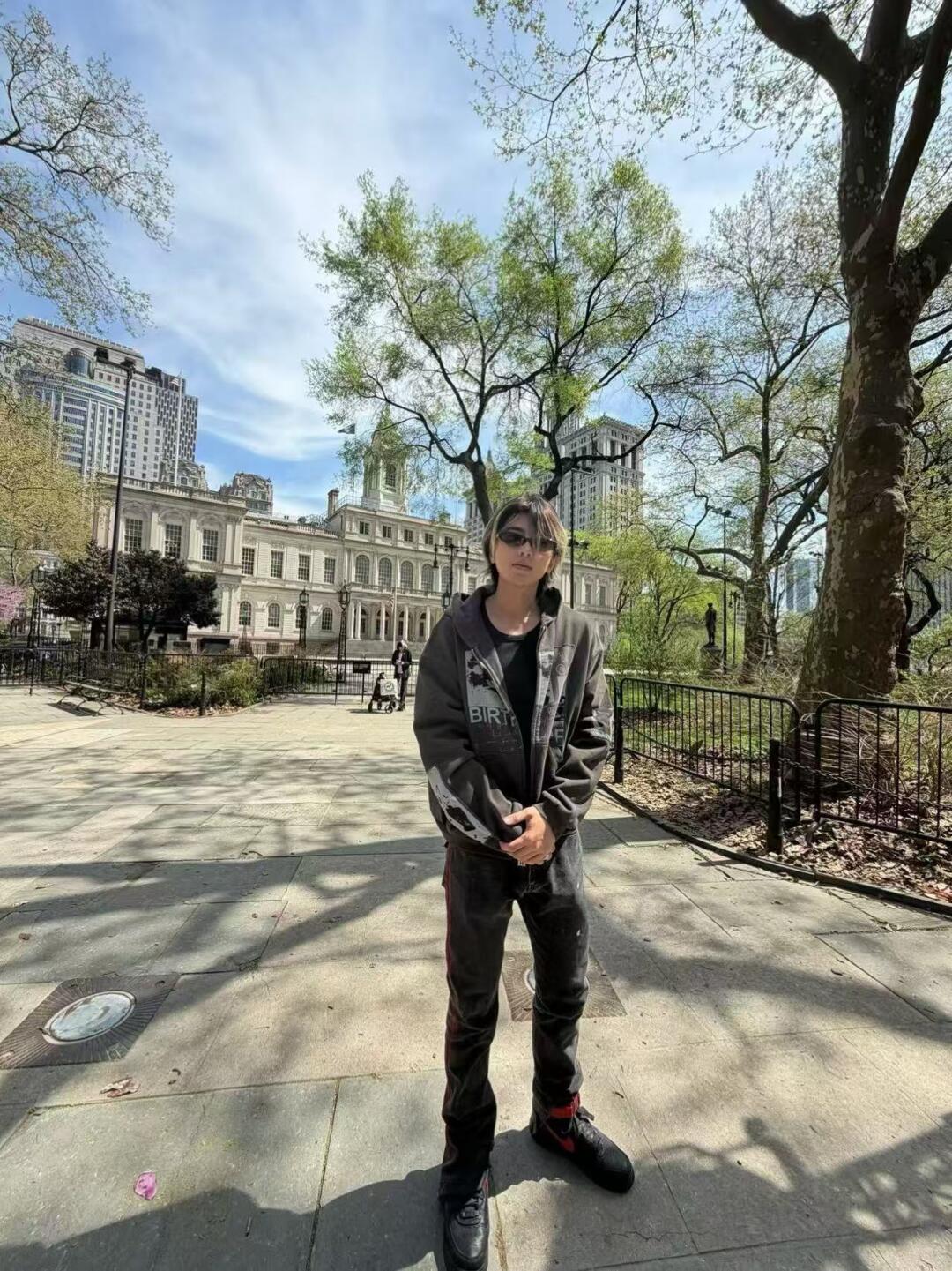 纽约偶遇蔡徐坤蔡徐坤萌萌地站着给拍照