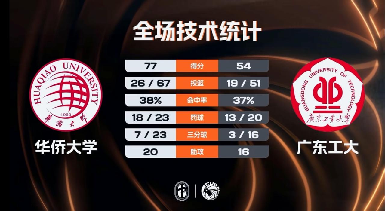 华侨大学率先进入东南赛区4强,以77:54战胜广州工业大学,同时获得全国大学生联赛32强门票。