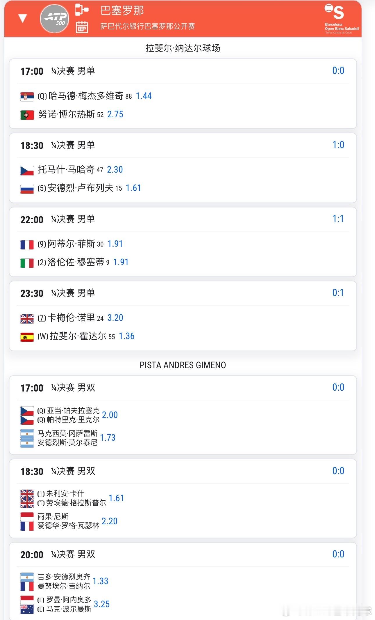 其他比赛见下方图片,兹维列夫,丰赛卡,卢布列夫也将出战,特别关注,拉法.霍达尔🇪🇸,他的排名已经窜升至47位wta