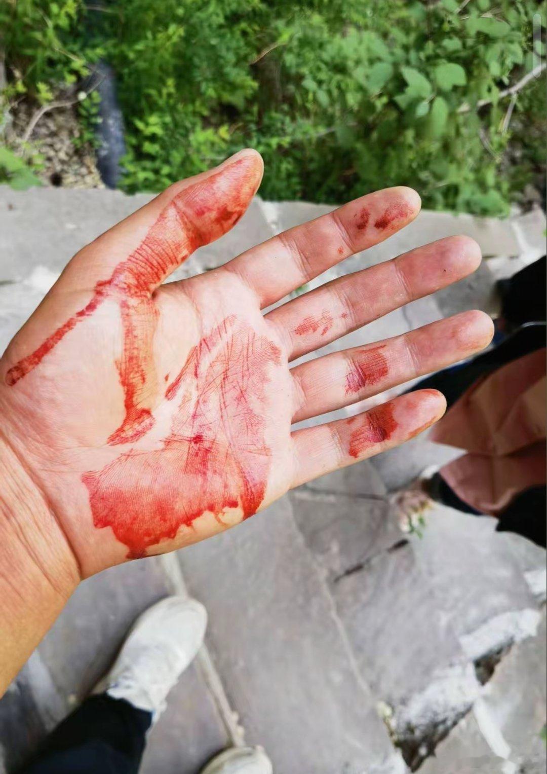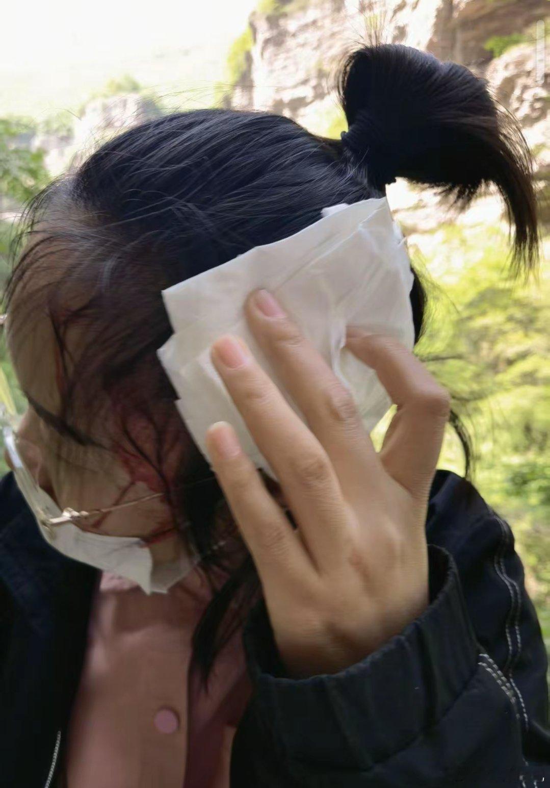 飞来横祸具象化,网友去峡谷景区玩,不小心被落石砸伤了头