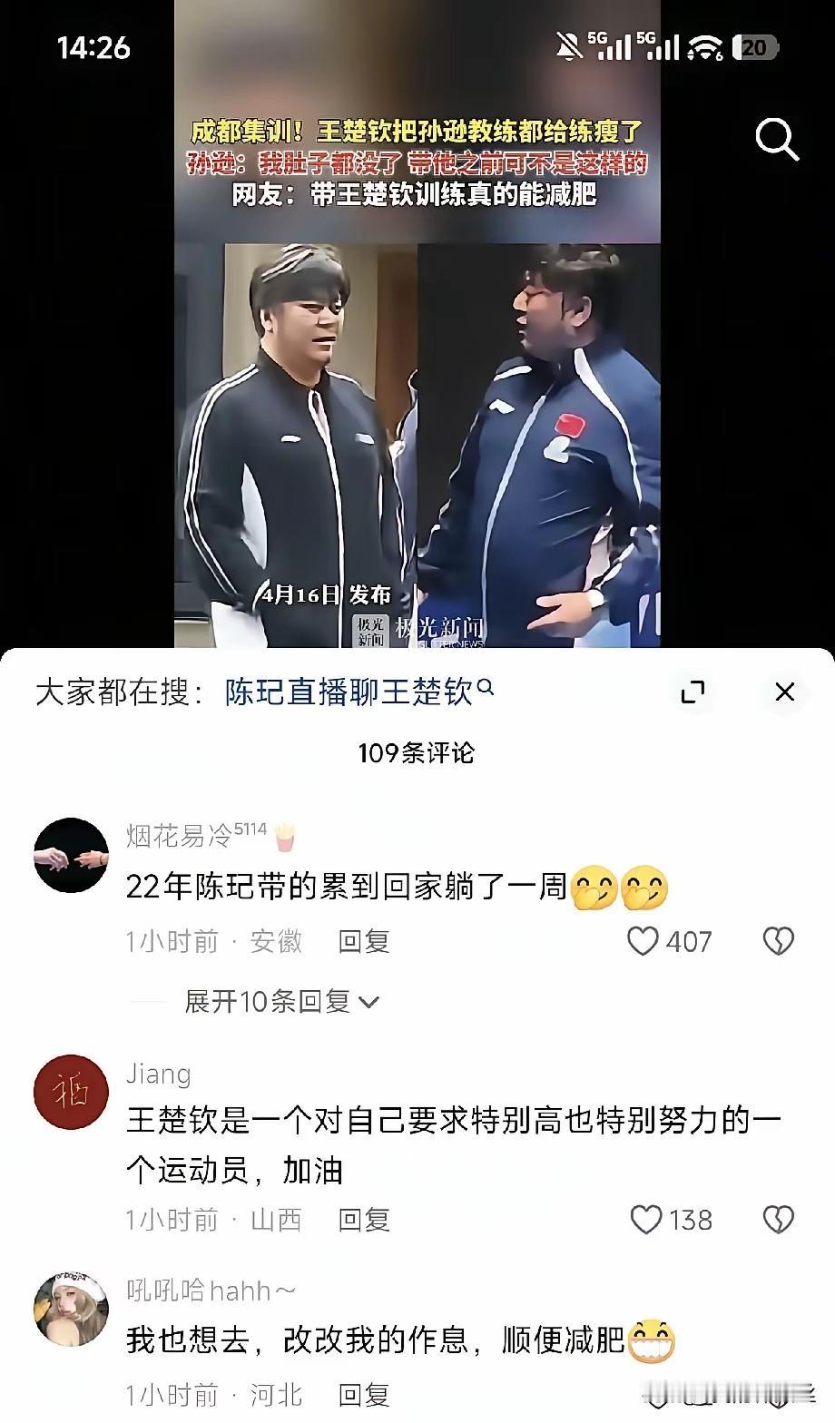 有那么一天可以休息一下挺好的,毕竟王楚钦是那种连主管教练都给练瘦的那种人,太卷,也太辛苦,太自律了!