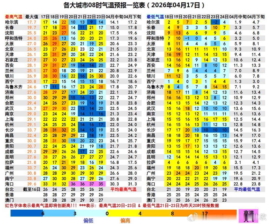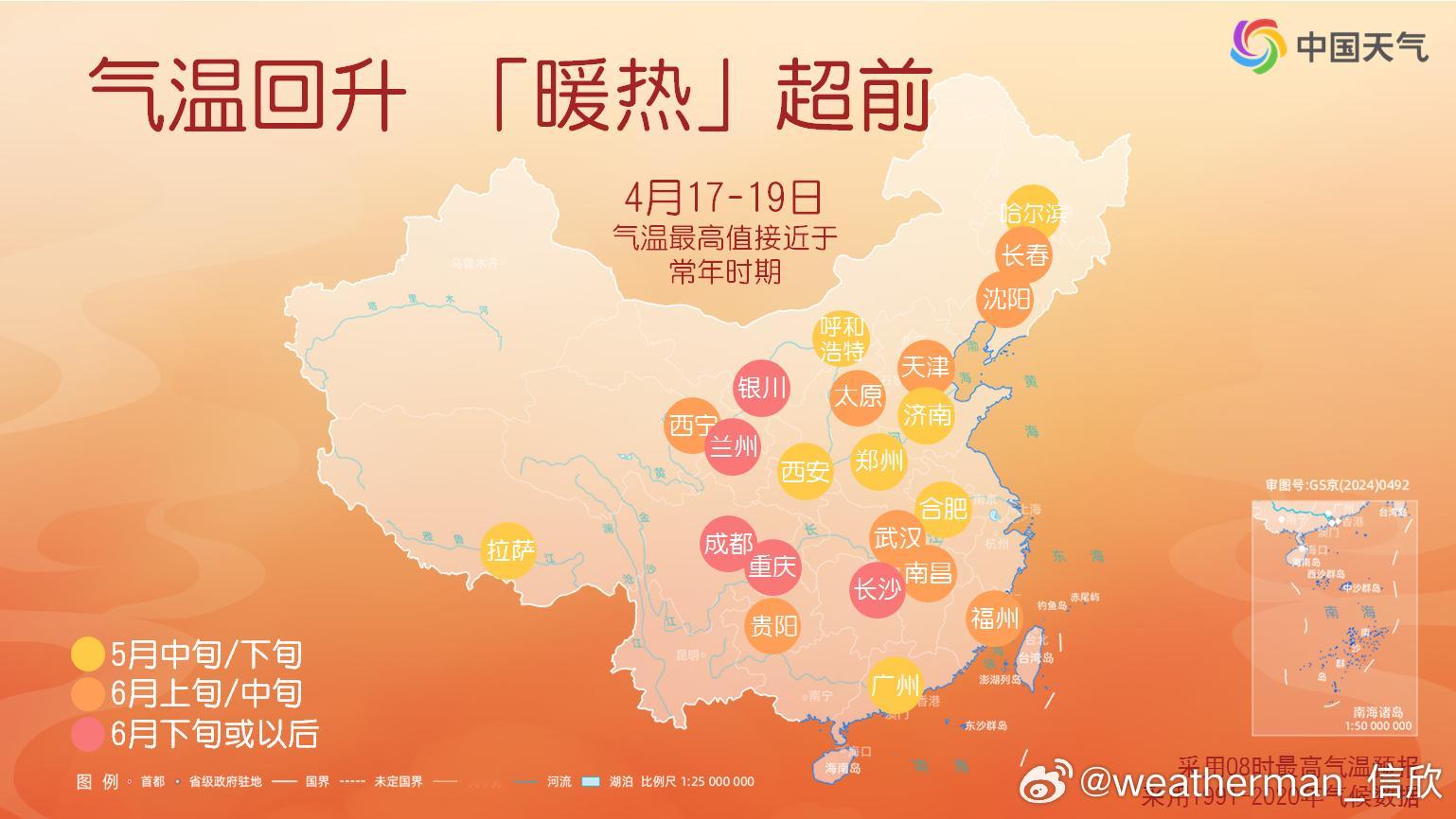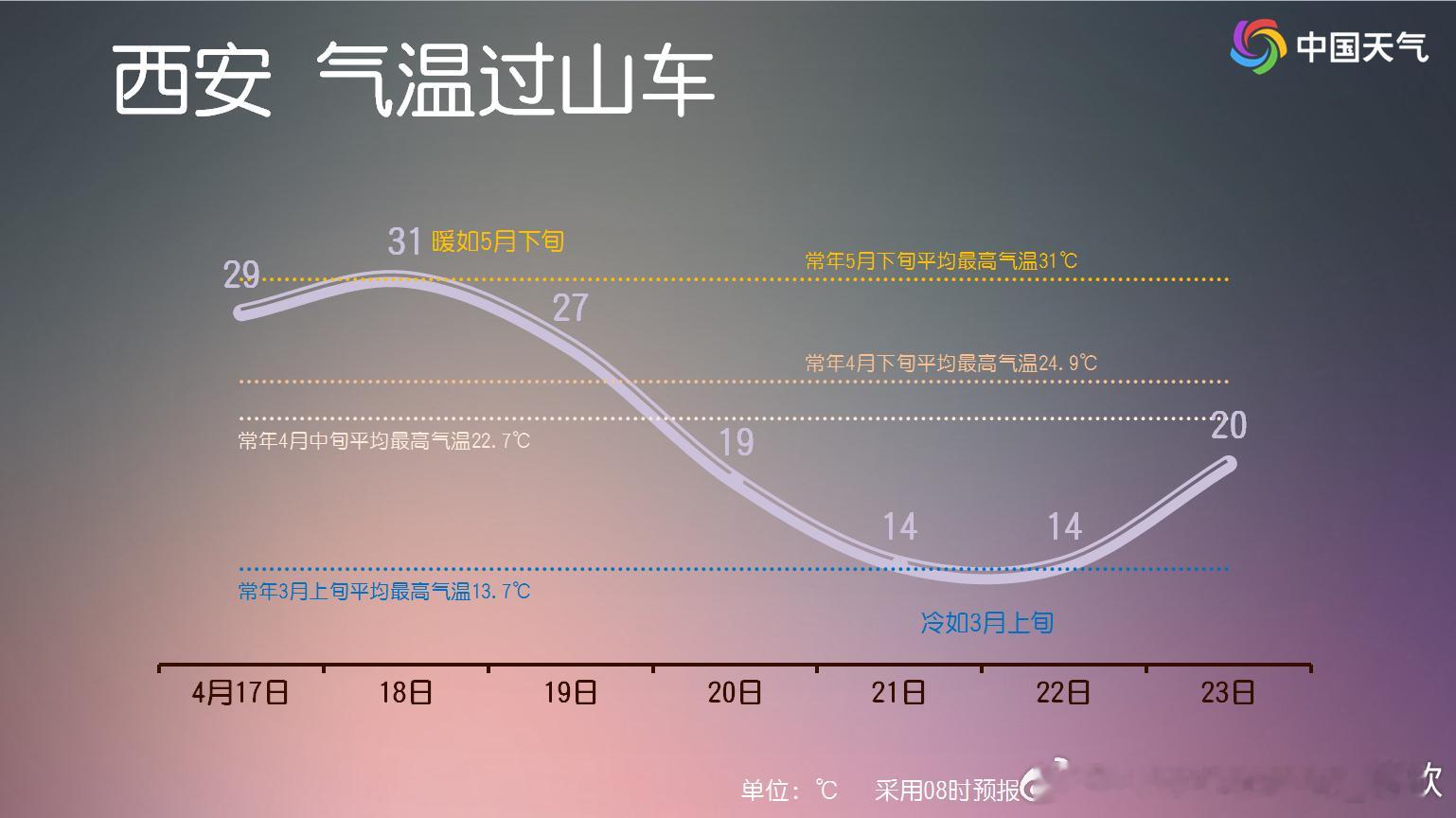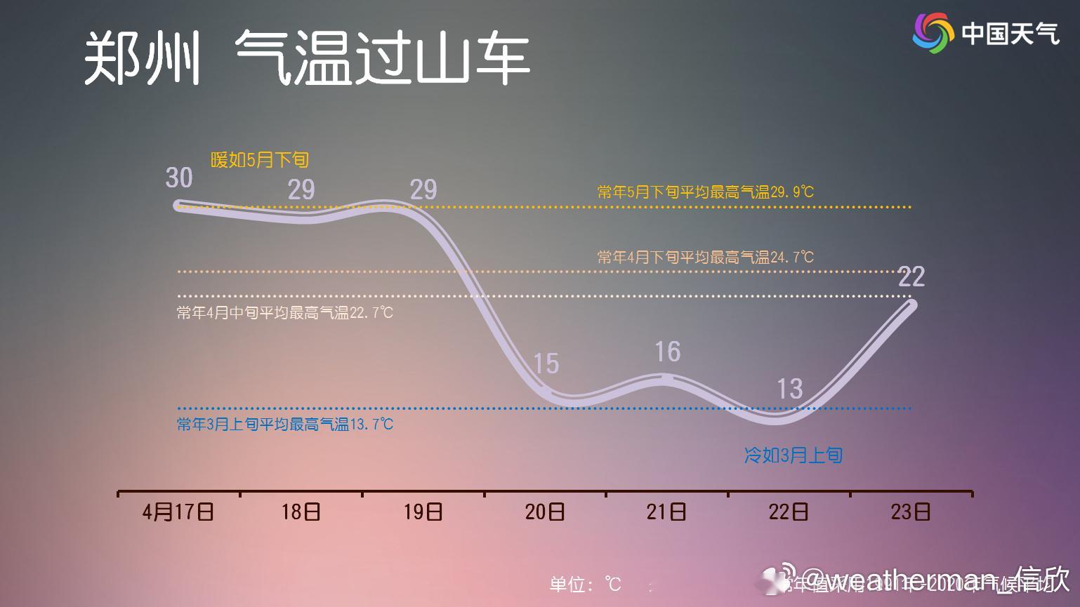【气温过山车】未来北方到长江流域多地,气温先升后降,大起大落,又是过山车走势。未来7天,最高气温高点和低点差15℃以上的省会城市有:西安 郑州 武汉 长沙,体验春如四季。波动在10℃以上省会首府直辖市有:哈尔滨 长春 沈阳 呼和浩特 太原 天津 兰州 银川 济南 合肥 南昌 重庆 成都。