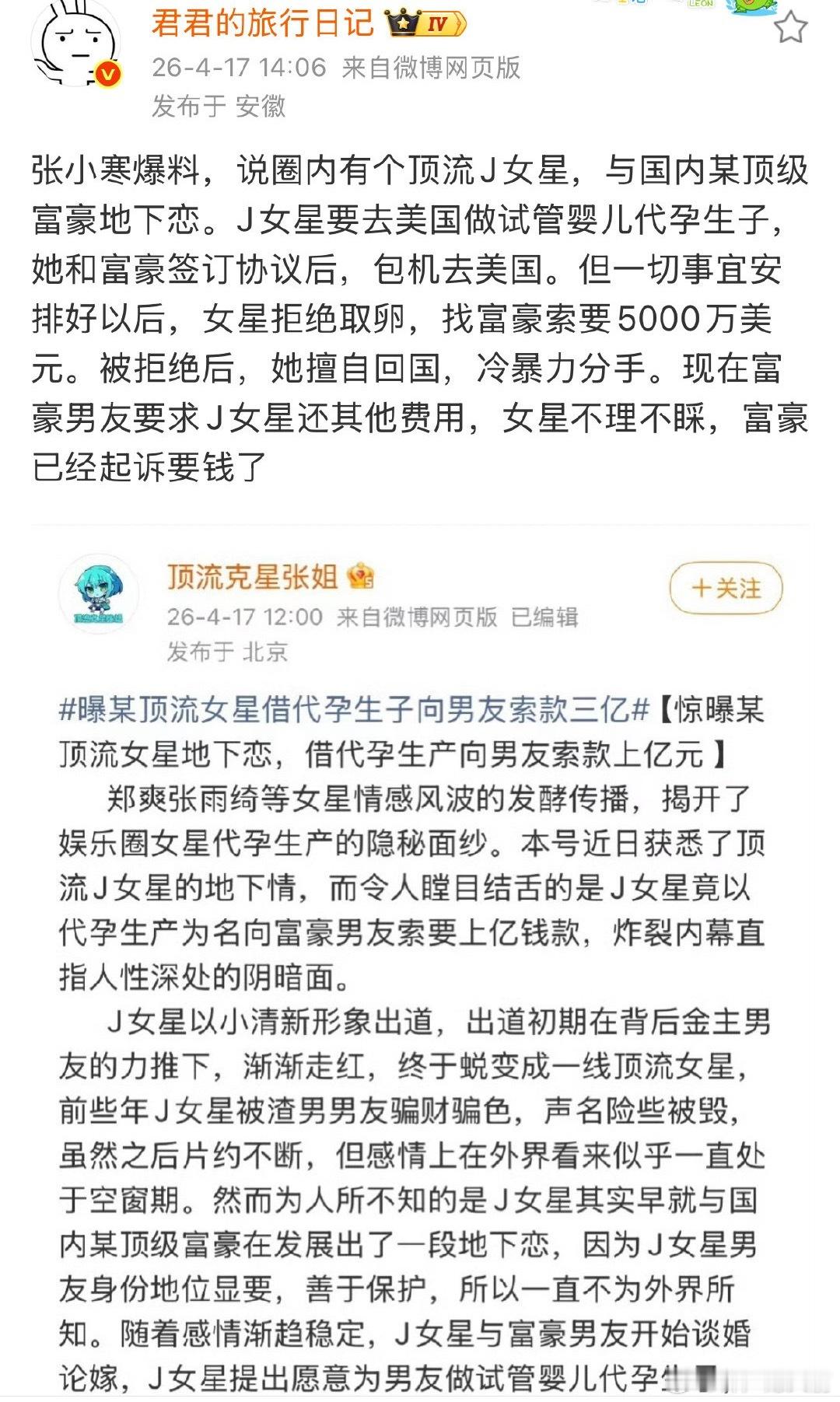 曝顶流女星借代孕生子向男友索要3亿看完有个疑问,能拿出上亿元的男人还能被女明星这么骗?