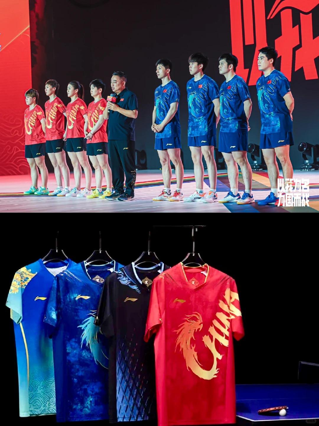 国乒出征巴黎奥运的红蓝龙服就很霸气侧漏,去年多哈战袍也很耐看!