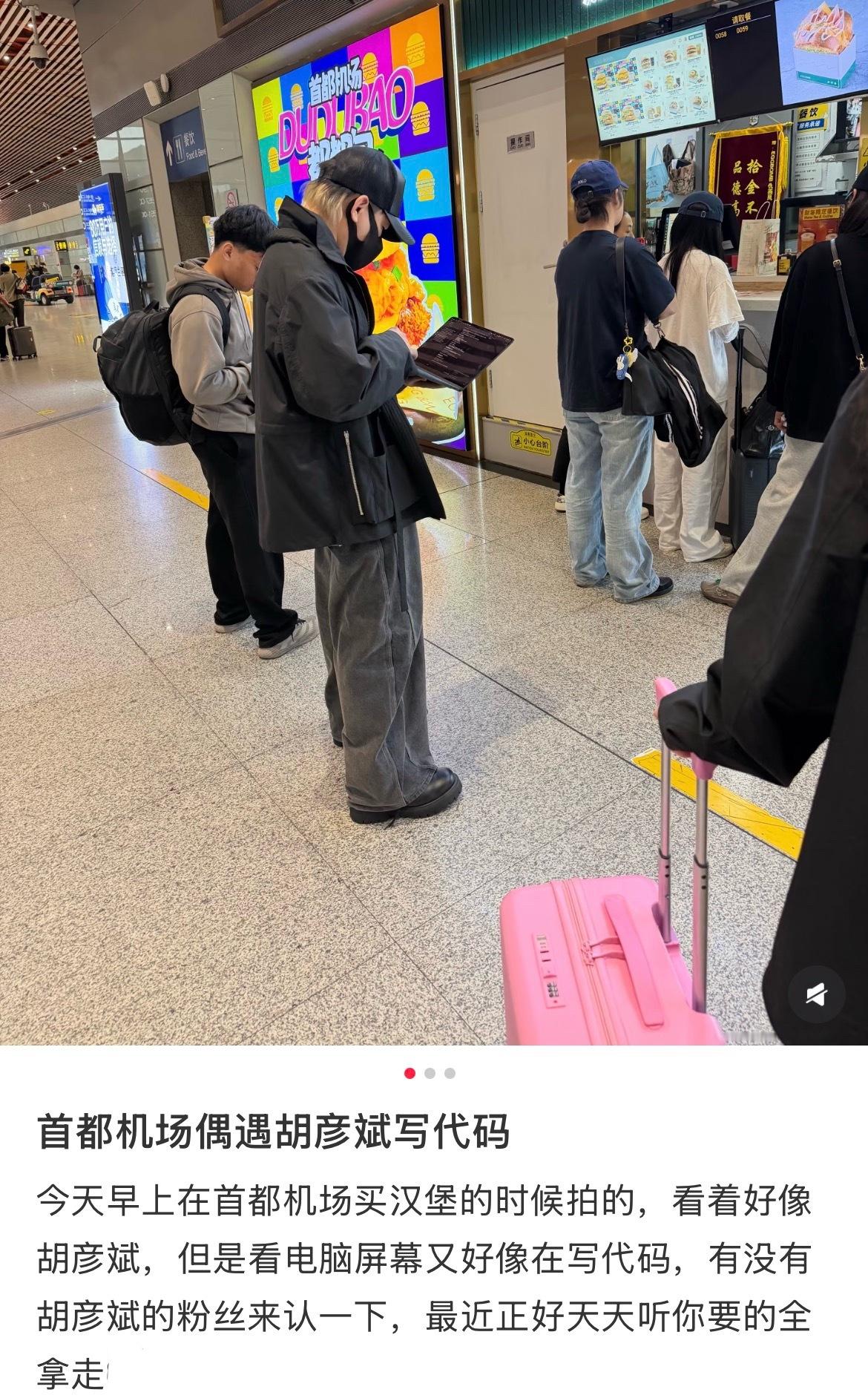 偶遇胡彦斌机场写代码 网友偶遇胡彦斌在机场写代码这个老胡唱歌编曲作词全能也罢了,