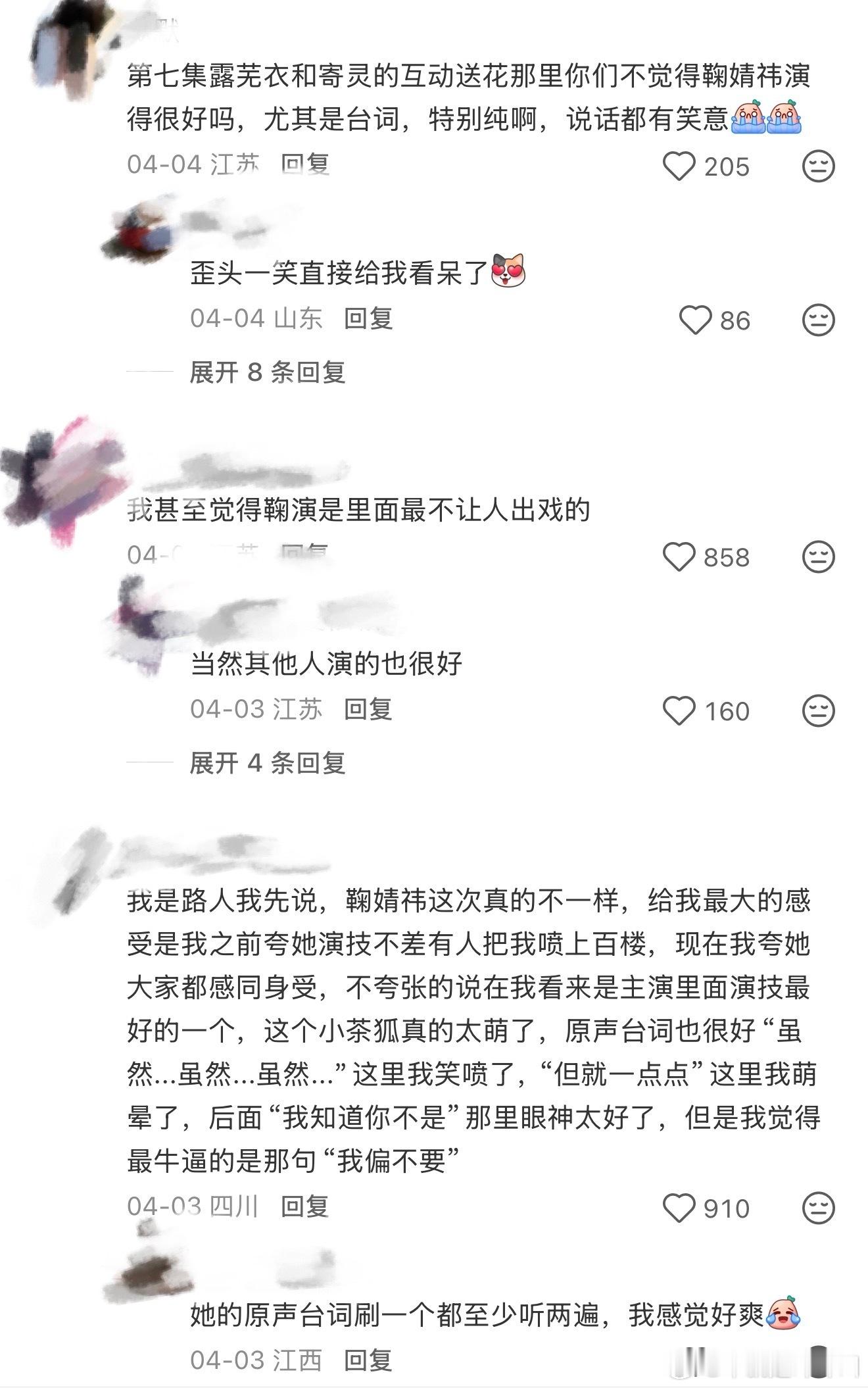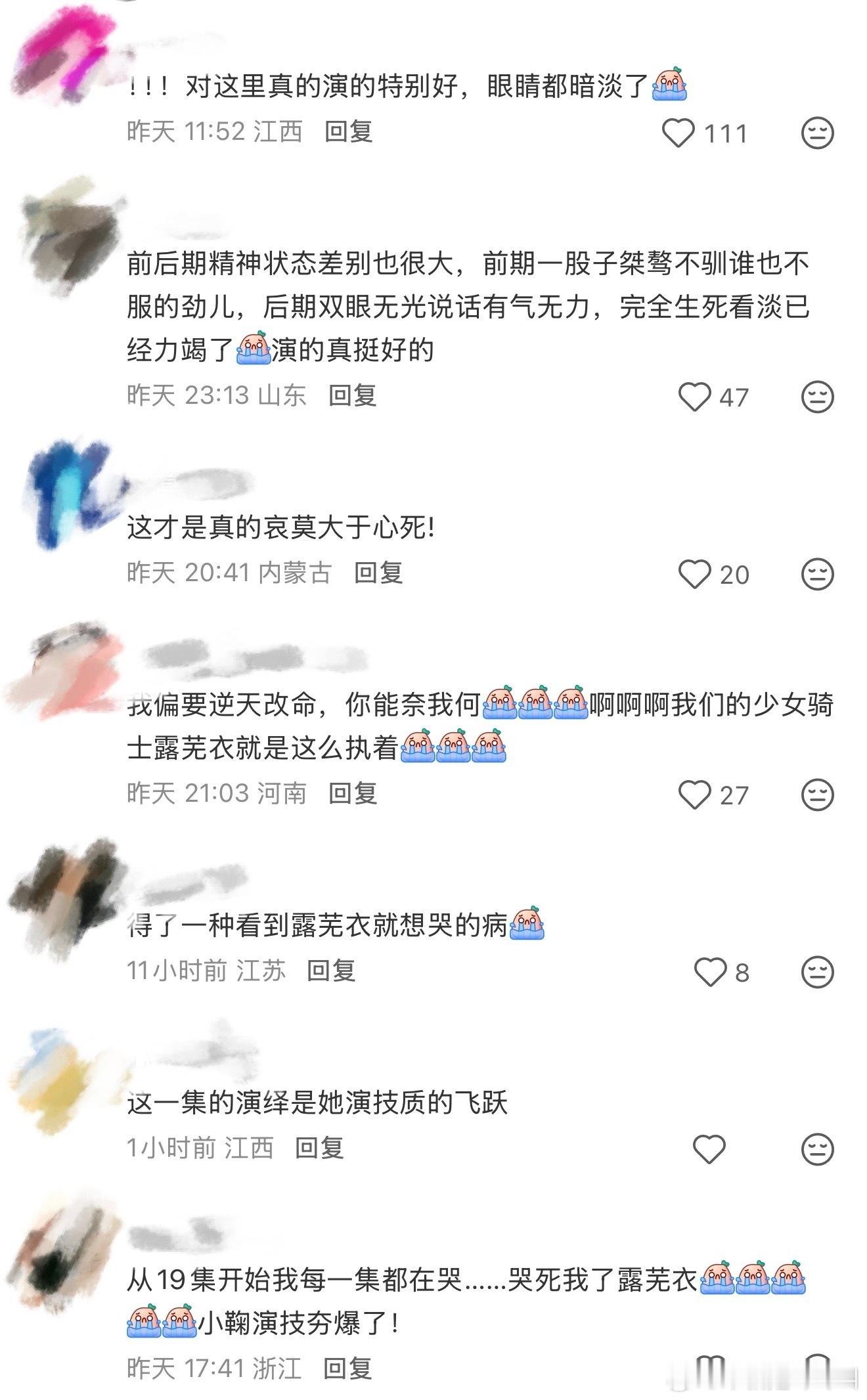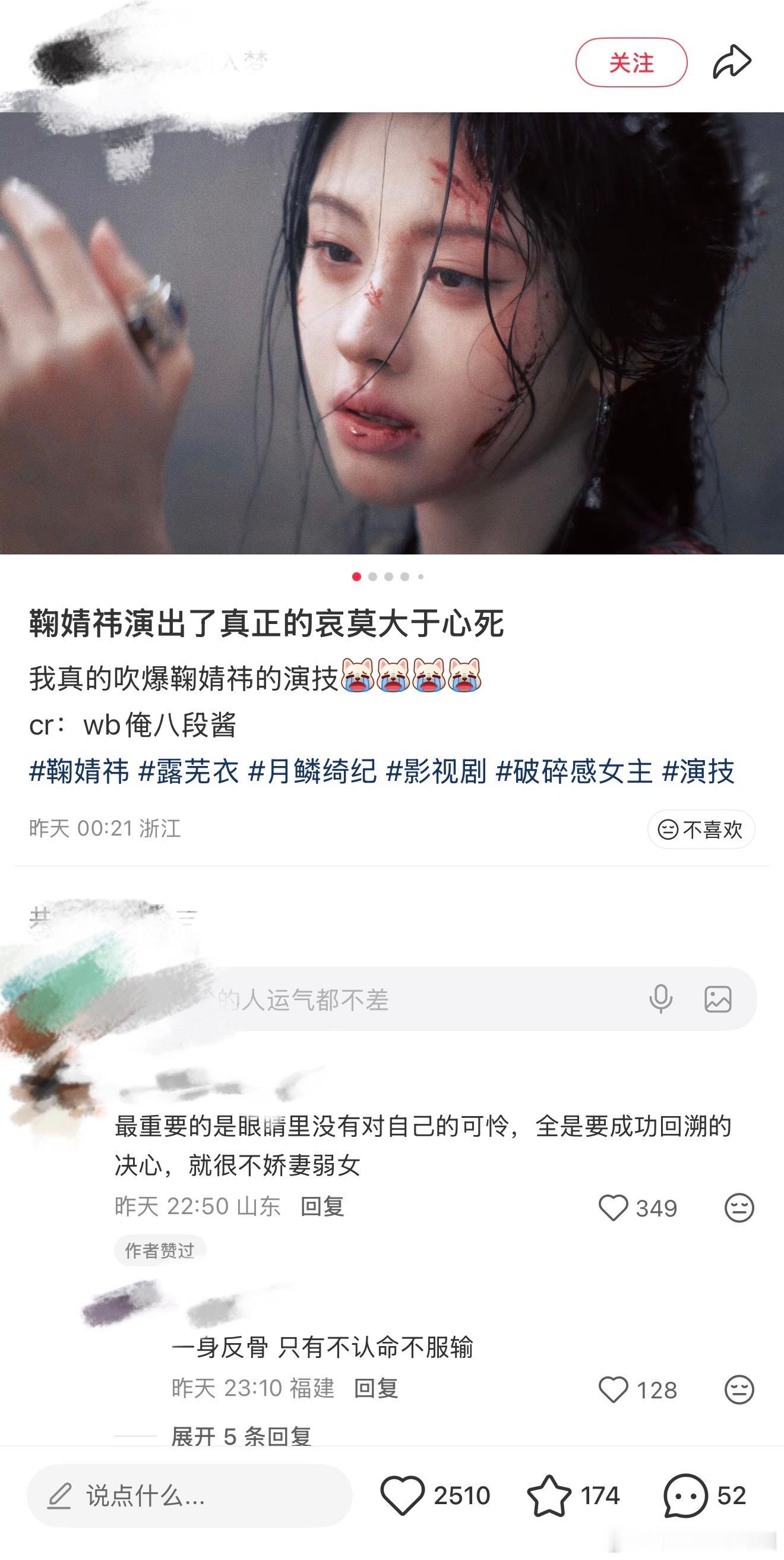 鞠婧祎回溯这段的演技被全平台认可了,都说演出了哀莫大于心死,回想一下觉得鞠姐好争气。月鳞还没播完演技口碑和路人粉都有了, 有效剧播最好的局面,实在厉害