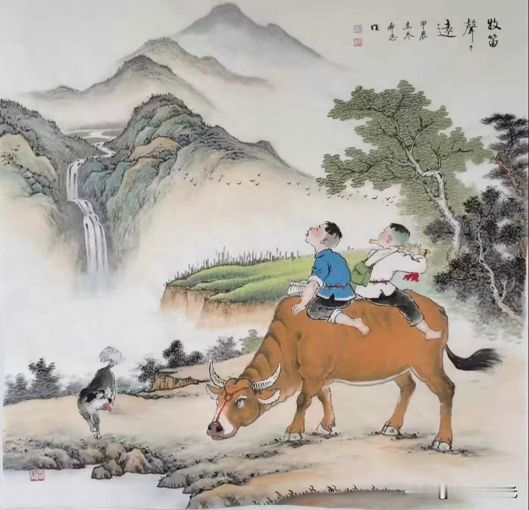 牧童牛群映山间,乡野童趣乐无边。