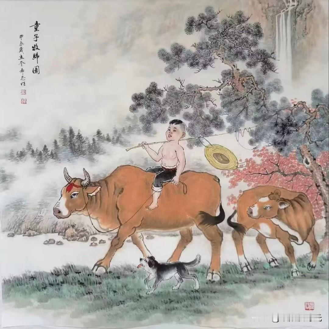 牧童牛群映山间,乡野童趣乐无边。 汤希忠老师精品国画《乡野童趣》 中艺书画分享