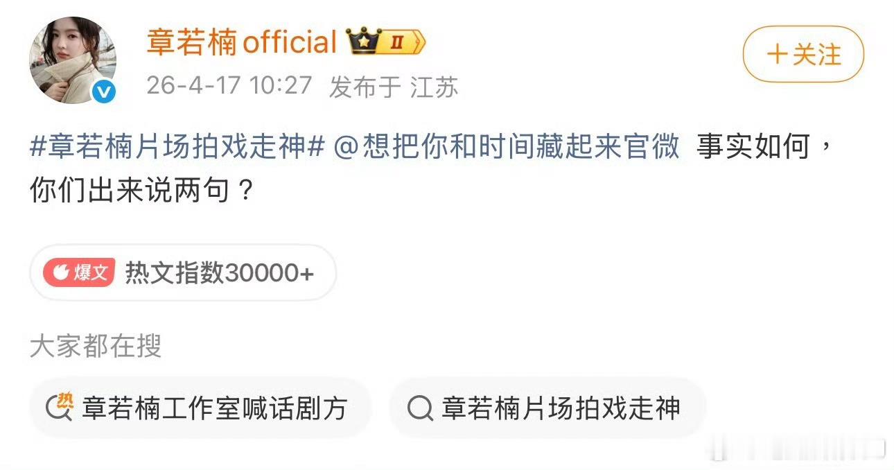 想把你和时间藏起来官博发了声明,听见喊名字分神了确实不至于直接扣上不敬业了,但之前章若楠工作室喊话剧方 ,措辞有什么隐情一样,结果官博出来长篇累牍说完和大家所见没什么区别啊