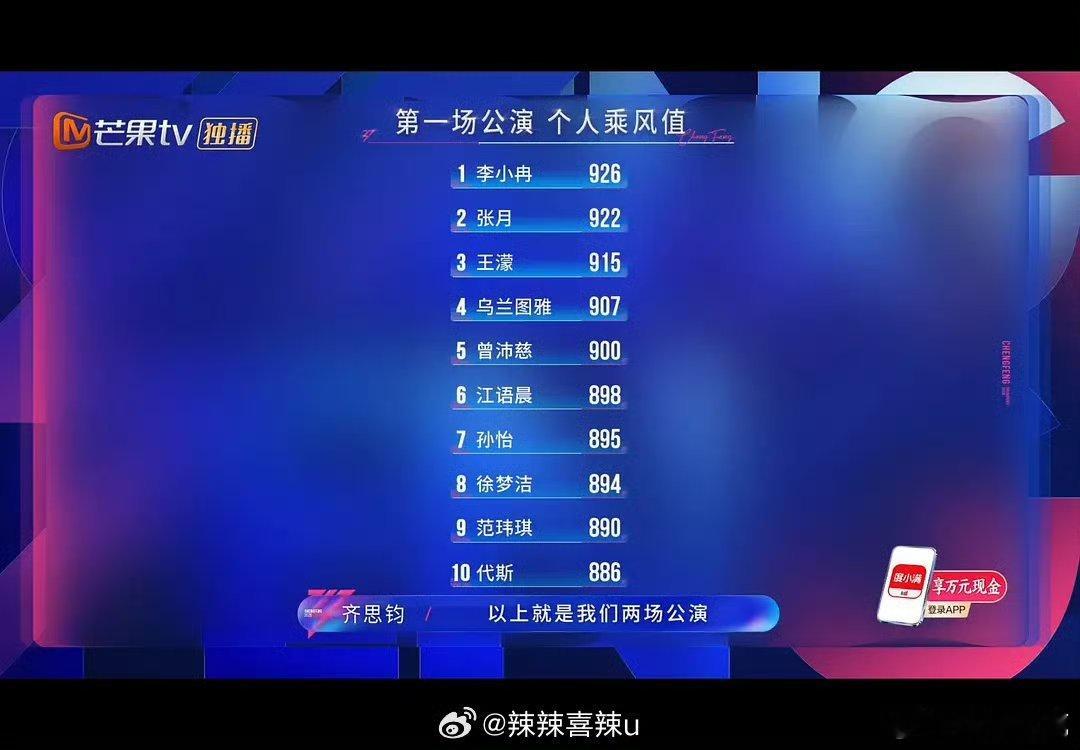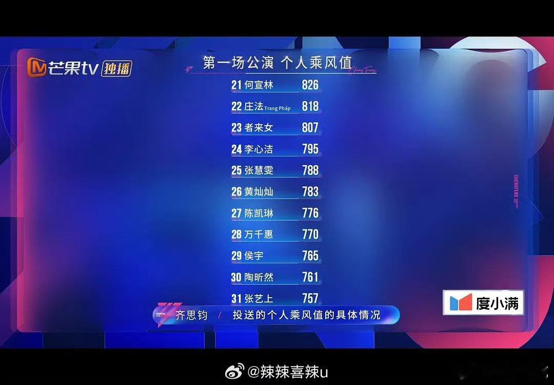 浪姐一公个人乘风值排名