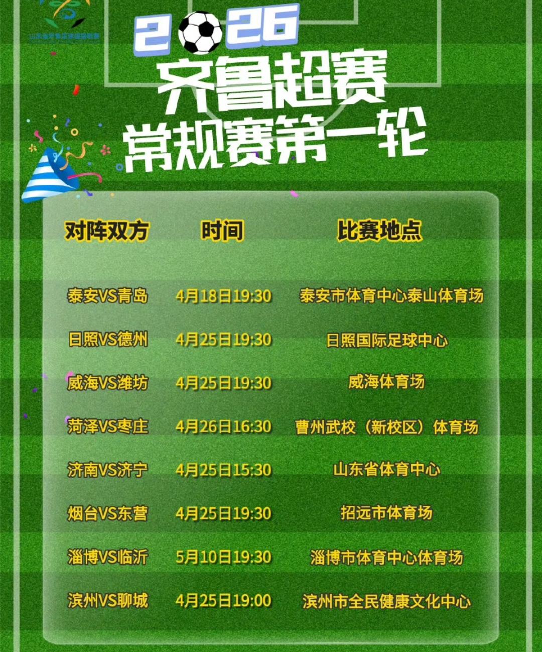 日前,随着赛程的正式公布,2026赛季齐鲁超也即将敲响战鼓。揭幕战将由上赛季的冠军泰安队,迎战今年刚刚参赛的青岛队,实力强劲的两队势必将会上演一场强强对话。其他几场比赛也会在之后依次进行,球迷们可以通过查阅具体赛程来安排自己的观赛计划。