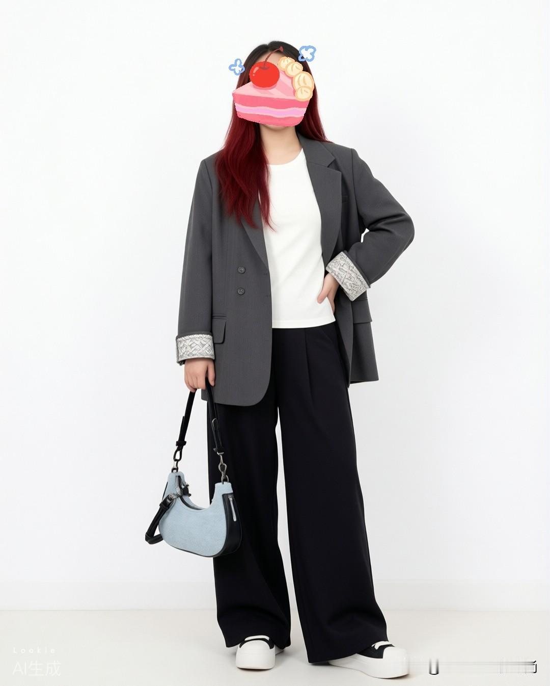 💡 显瘦技巧:直筒裤是梨形身材的本命!完美修饰腿型,西装外套增加气场,又酷又飒,适合各种场合。