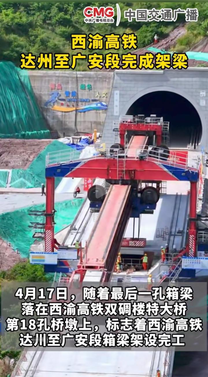 重要进展,时速350公里的渝西高铁达州至广安段已于今天(4月17日)率先架梁完成,控制性工程全长约12公里的华蓥山隧道和城口任口河特大桥正在冲刺和合龙贯通,预计2027年底有望全线开通运营,届时重庆坐高铁来往城口的只需1小时多一点,重庆坐高铁来往西安只需2.5小时,比现在走西成客专绕行成都要节省一半时间,渝西高铁也是云南坐高铁的进京大通道,目前3台7线的广安东站主体结构已经完成,大竹站(图四)和开州站(图五)正在全速建设中,预计2027年底与渝西高铁同步投入运营。