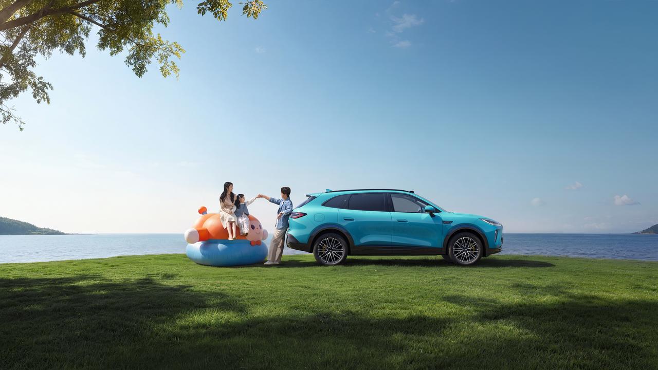 4870×1930×1710mm,轴距2920mm,B级车的尺寸放到大五座SUV里,空间基本盘不输。动力给得很猛:1.5T鲲鹏混动加DHT260,综合550kW,雪豹四驱零百实测4.83秒;纯电续航230km,综合续航2000km,馈电油耗3.9L。这个"235"组合,数据层面挑不出硬伤。